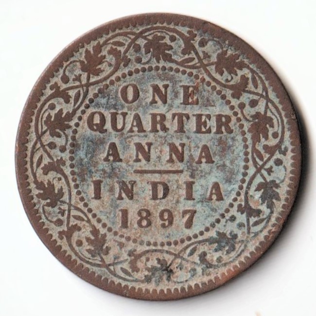 Rare 1/4 Quarter Anna 1897 Copper Coin of Victoria Empress Standard Circulation Coin of British India