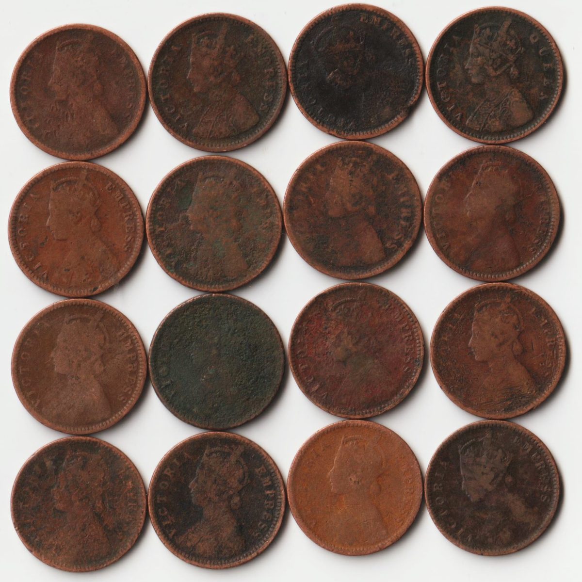 Rare 16 Coins Set of 1/12 Anna 1862 to 1901 Copper Coins of Victoria Queen British India Coinage