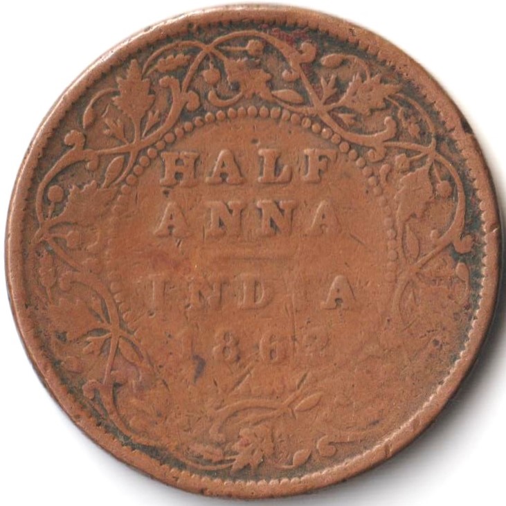 Rare Half Anna 1862 Copper Coin of Queen Victoria British India Coinage