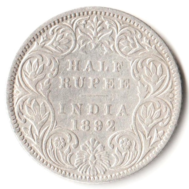 Rare Half Rupee 1892 of Bombay Mint of Victoria Empress Collectible British India Silver Coin