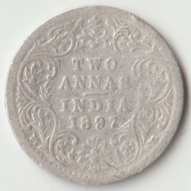 Rare Two Anna 1897 Silver Coin of Victoria Empress British India Coinage