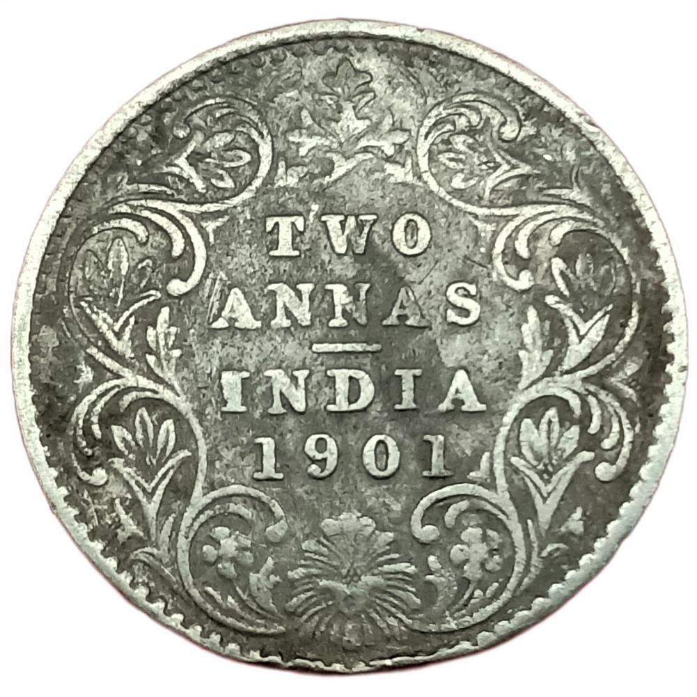 Rare Two Annas 1901 Coin of Victoria Empress british India Collectable Grade Silver Coin #NH1438