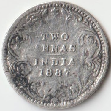 Two Anna 1887 Silver Coin of Victoria Empress British India Coinage