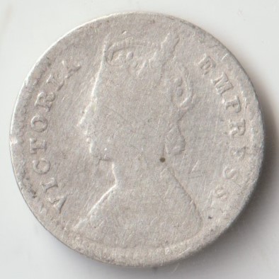 Two Anna 1888 Silver Coin of Victoria Empress British India Coinage