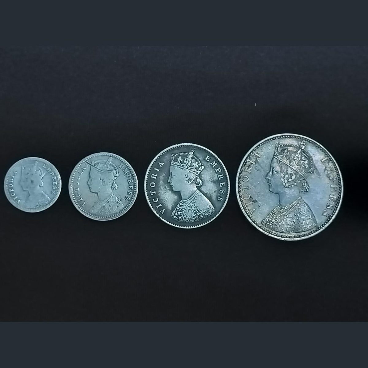 Two Anna,1/4,Half and One Rupee 1886 Victoria Empress RARE Set Of 4 Coins