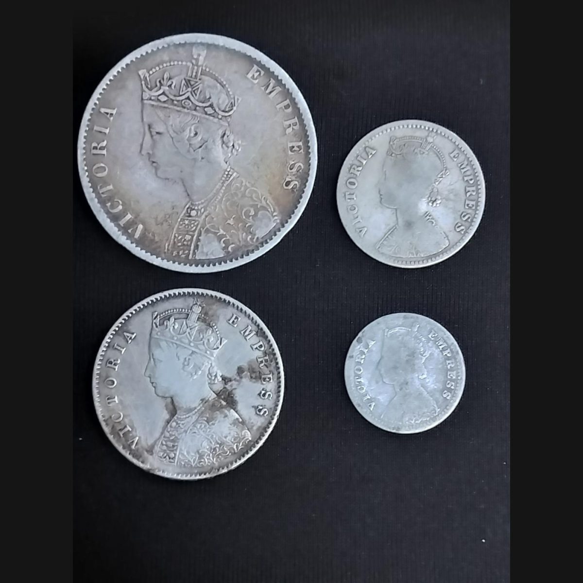 Two Anna,1/4,Half and One Rupee 1887 Victoria Empress RARE Set Of 4 Coins