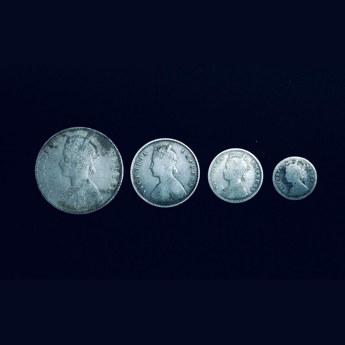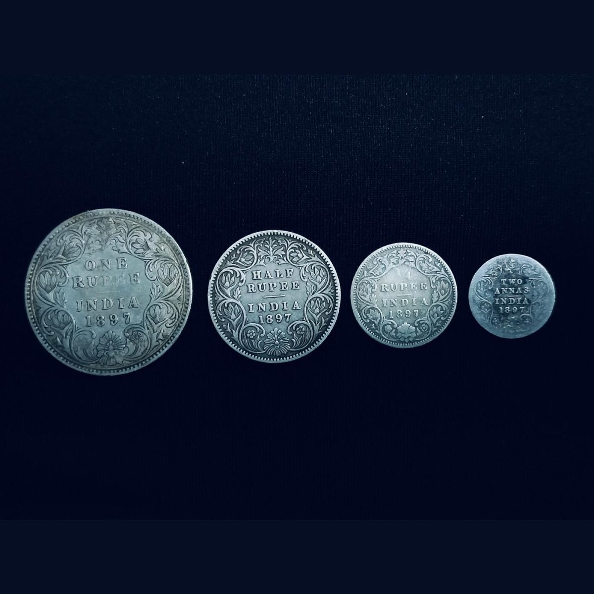 Two Anna,1/4,Half and One Rupee 1897 Victoria Empress RARE Set Of 4 Coins