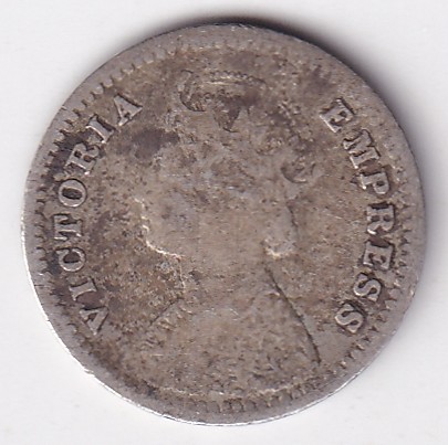 Two annas 1889 Victoria Empress Silver Coin Rare