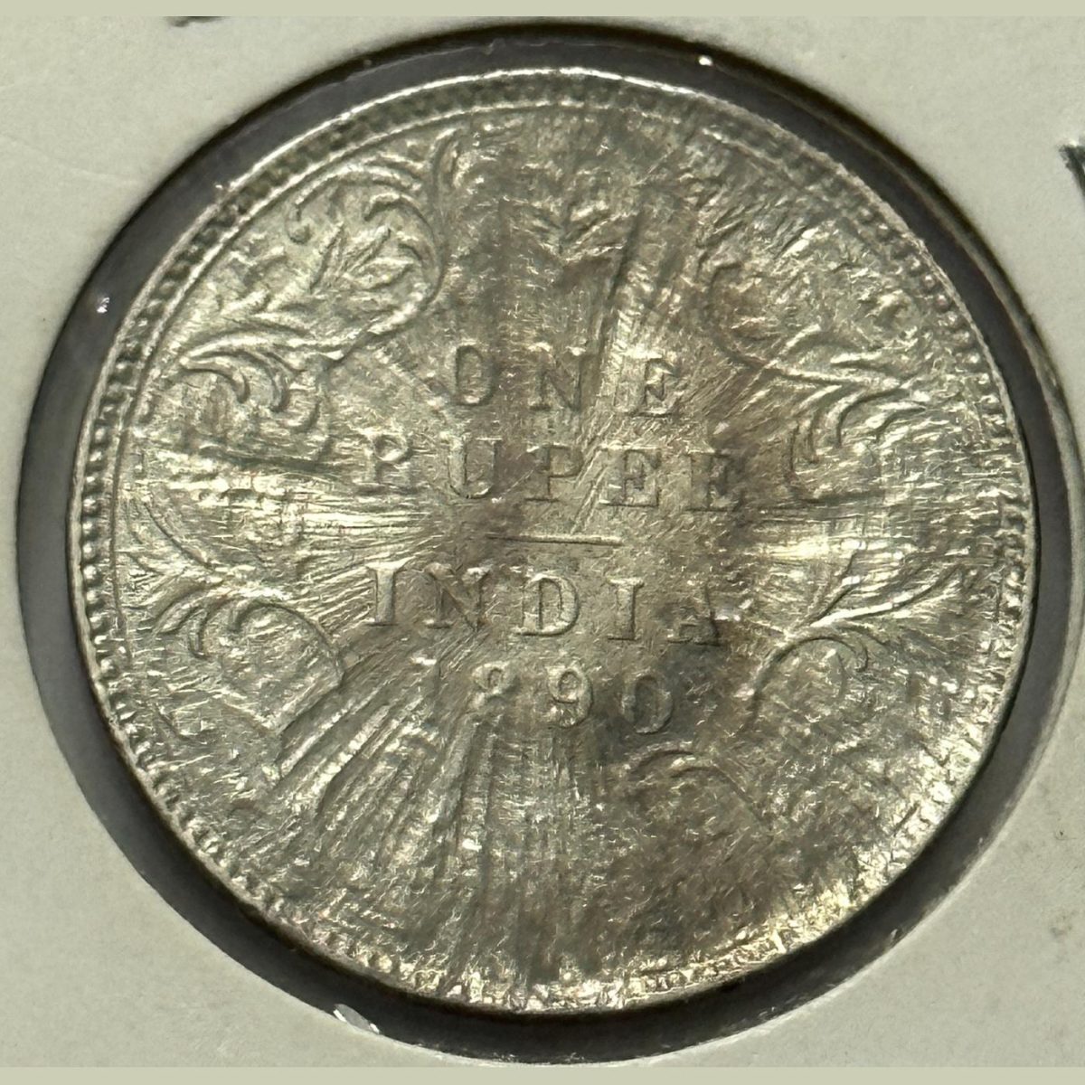 Victoria One Rupee 1890 Sun Burst ERROR Coin High Grade