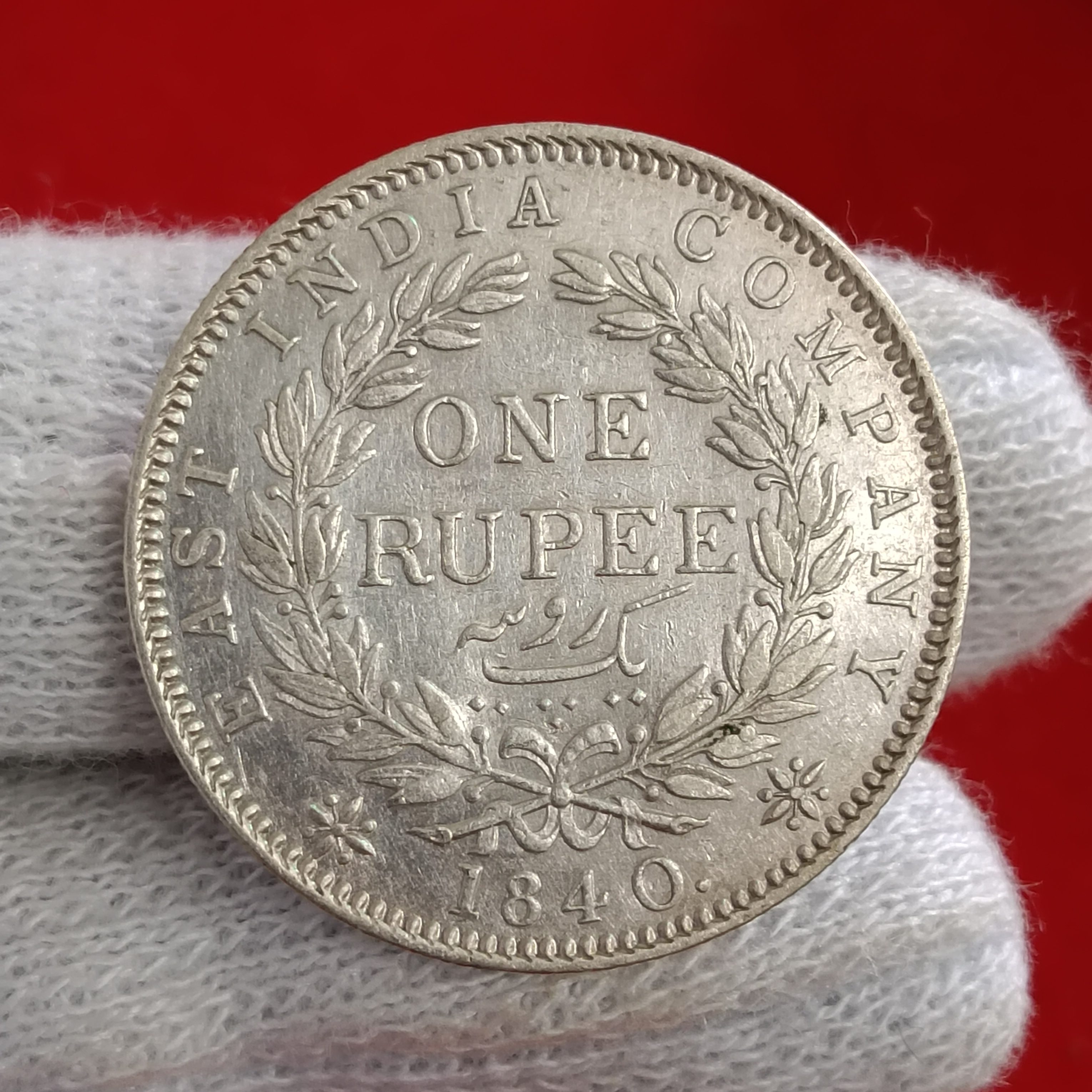 - Victoria Queen One Ruppe Continuous Legend Silver Coin 1840 Year Bombay Mint Scare Coin Good Condition British of India 02