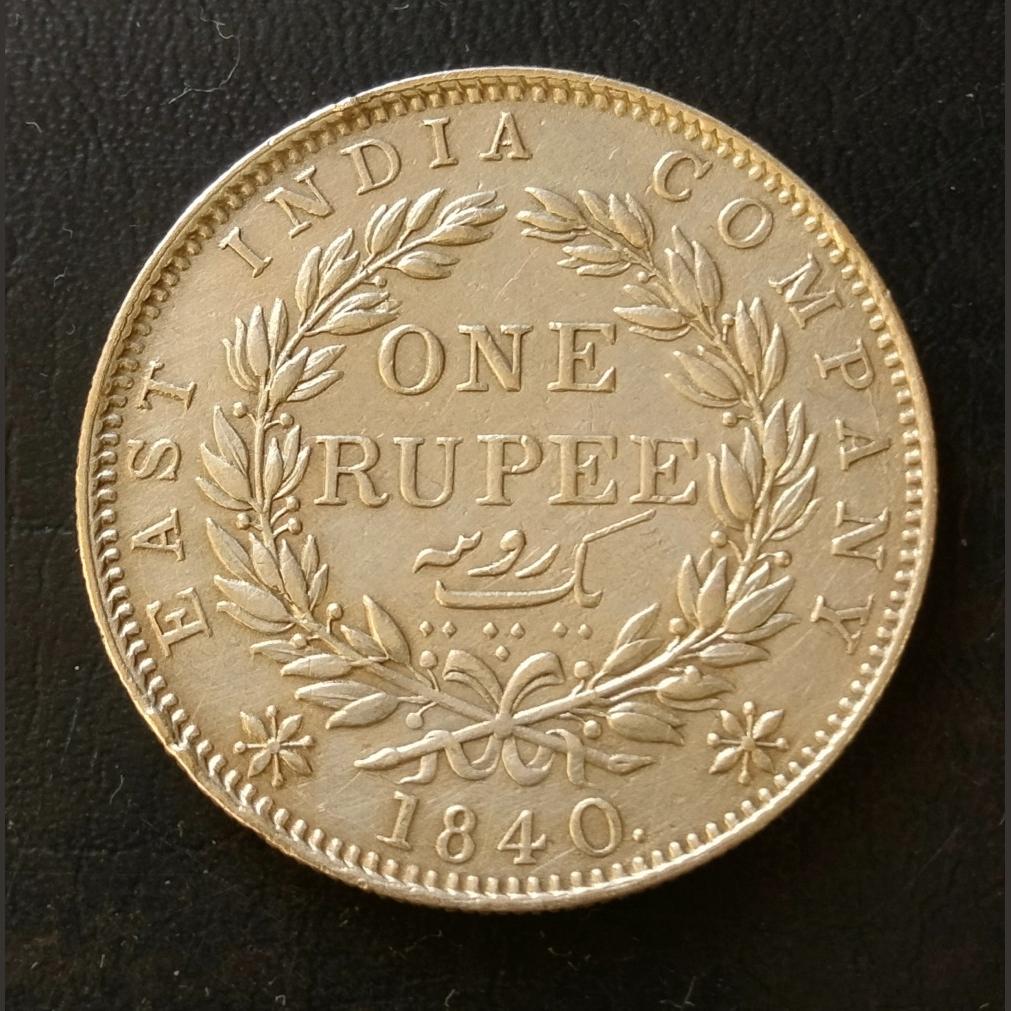 YEAR 1840 RUPEE CONTINUE LEGEND VICTORIA QUEEN EAST INDIA COMPANY EXCELLENT CONDITION. As
