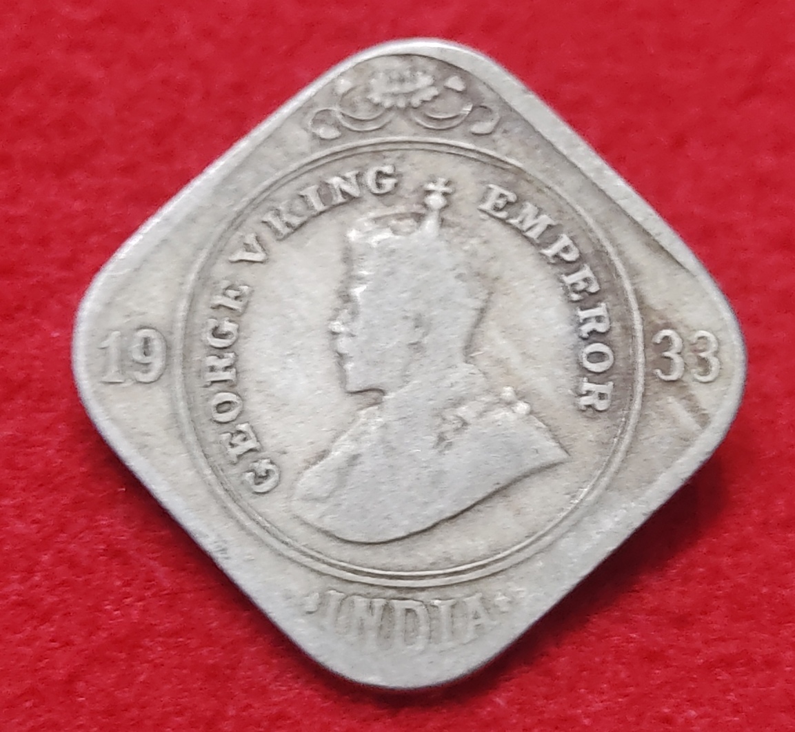 RARE 2 ANNA GEORGE V 1933 CALCUTTA MINT