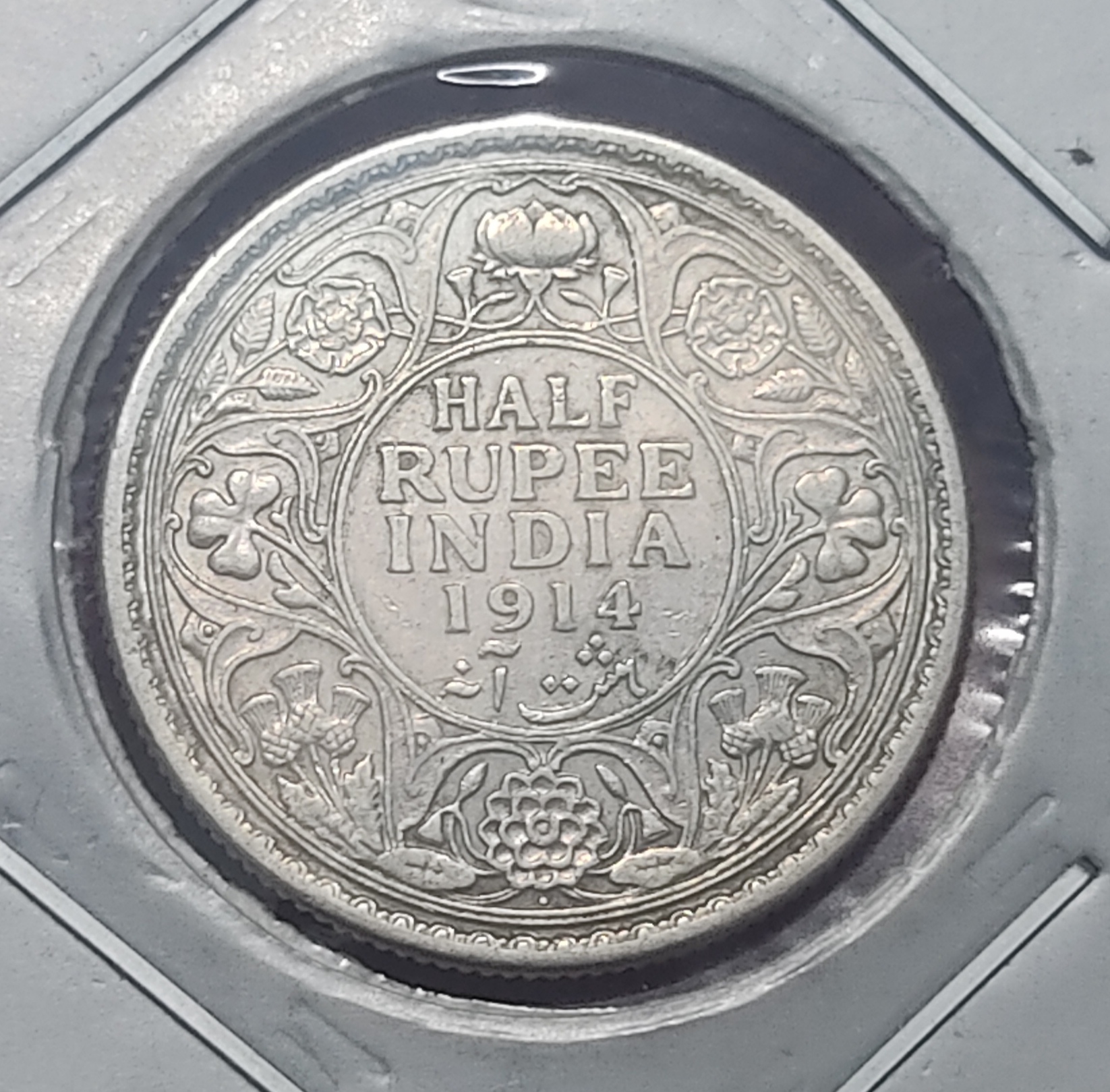 RARE HALF RUPEE SILVER COIN GEORGE V 1914 BOMBAY MINT