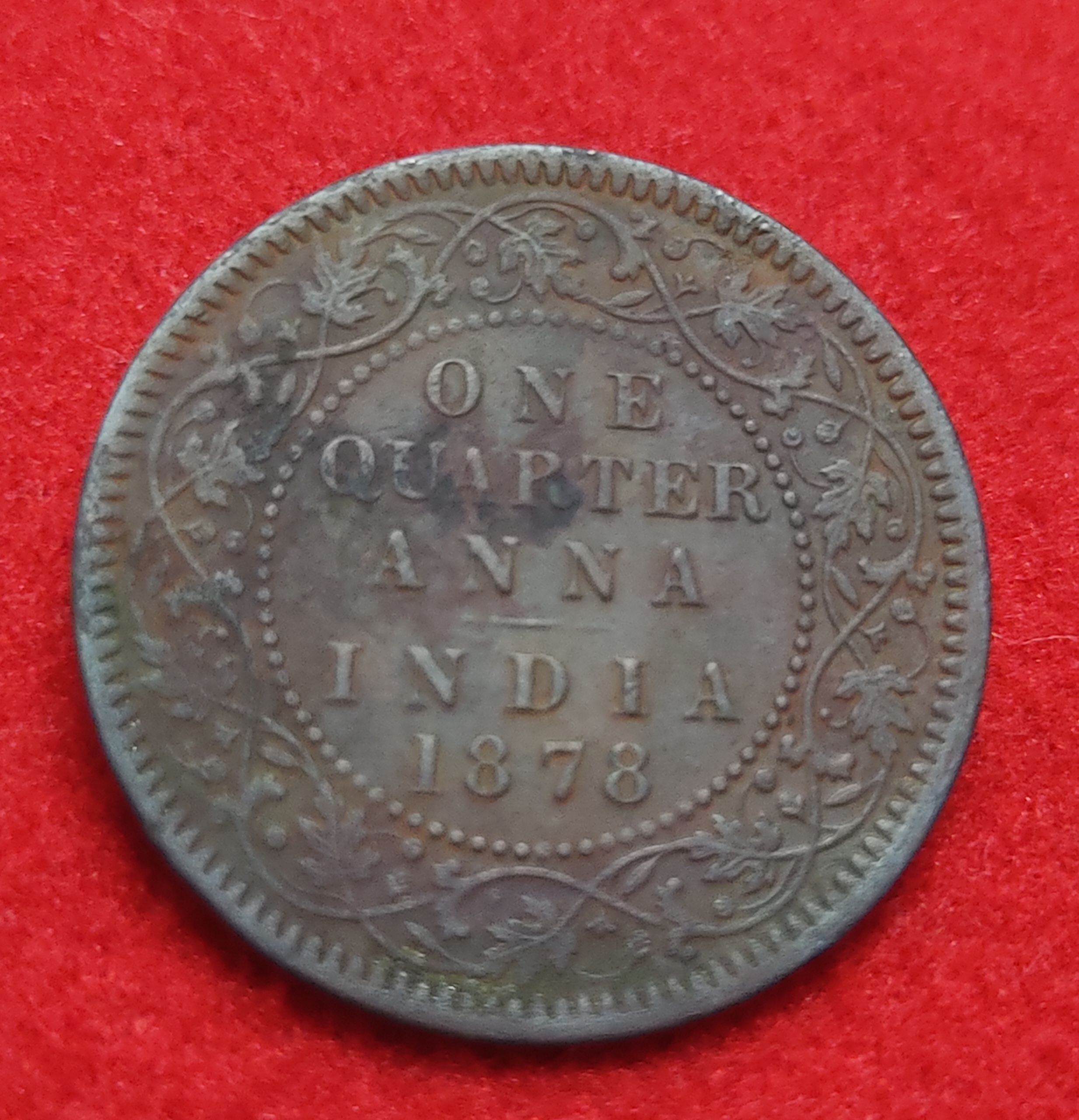 RARE ONE QUARTER ANNA VICTORIA EMPRESS 1876 CALCUTTA MINT
