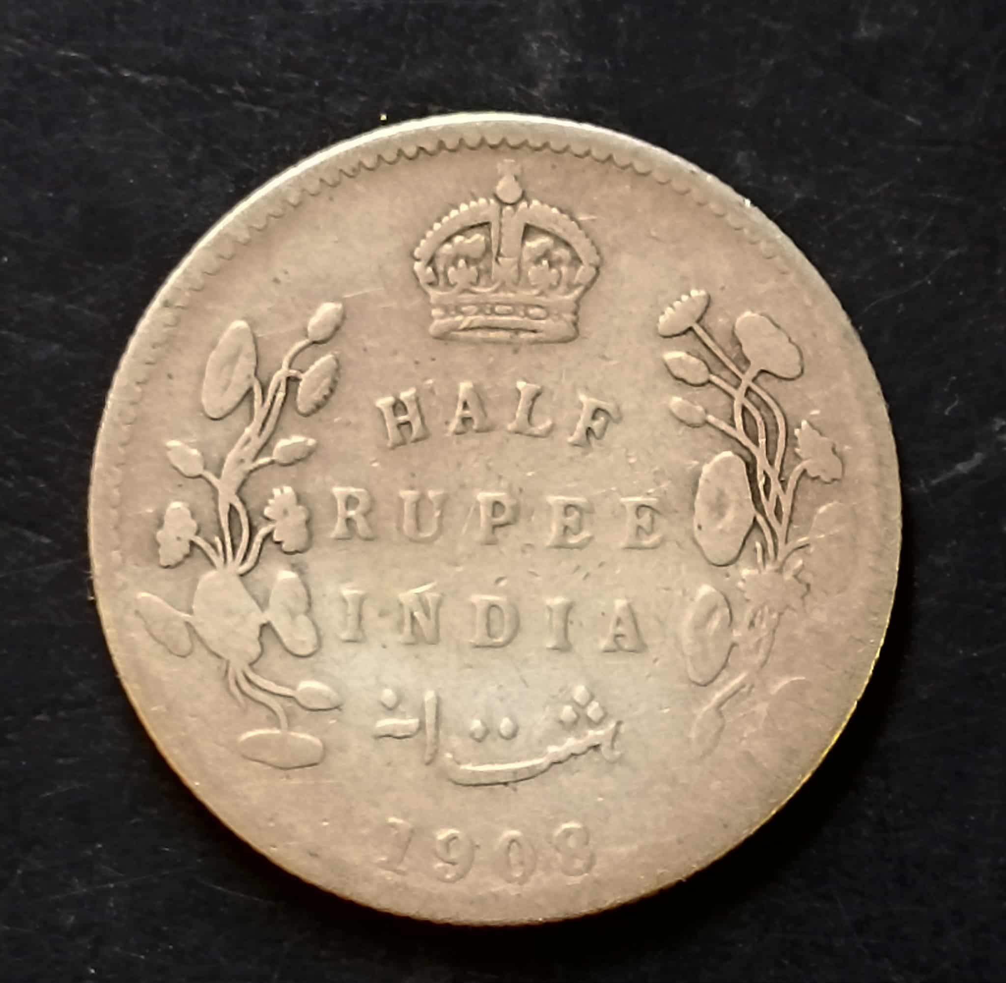 Silver British India King and emperor Edward VII Denominaton 1/2₹ Year 1908 Same and similar piece available