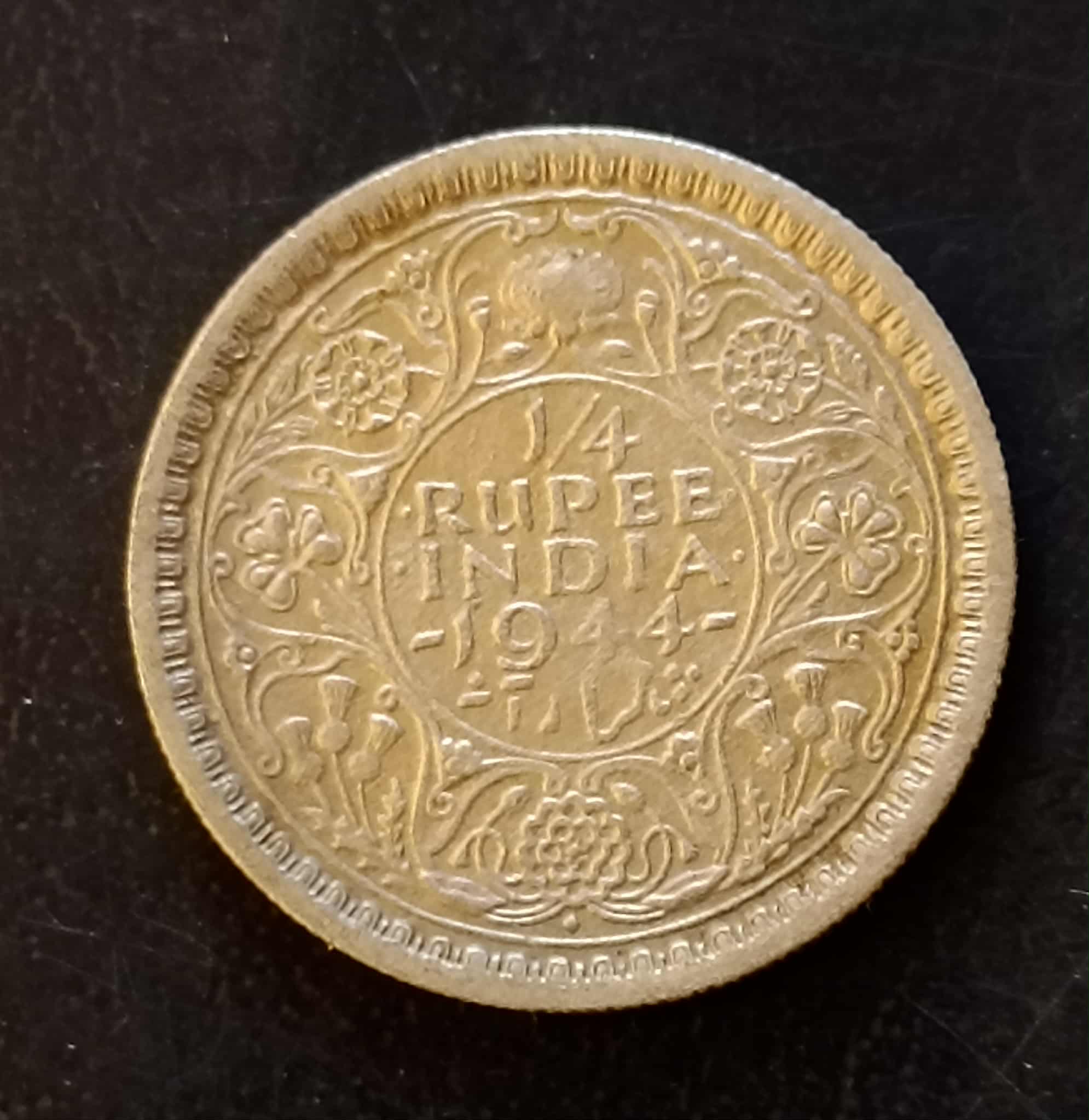 Silver British India King and emperor George vi Denominaton 1/4₹ Year 1944 Same and similar piece available