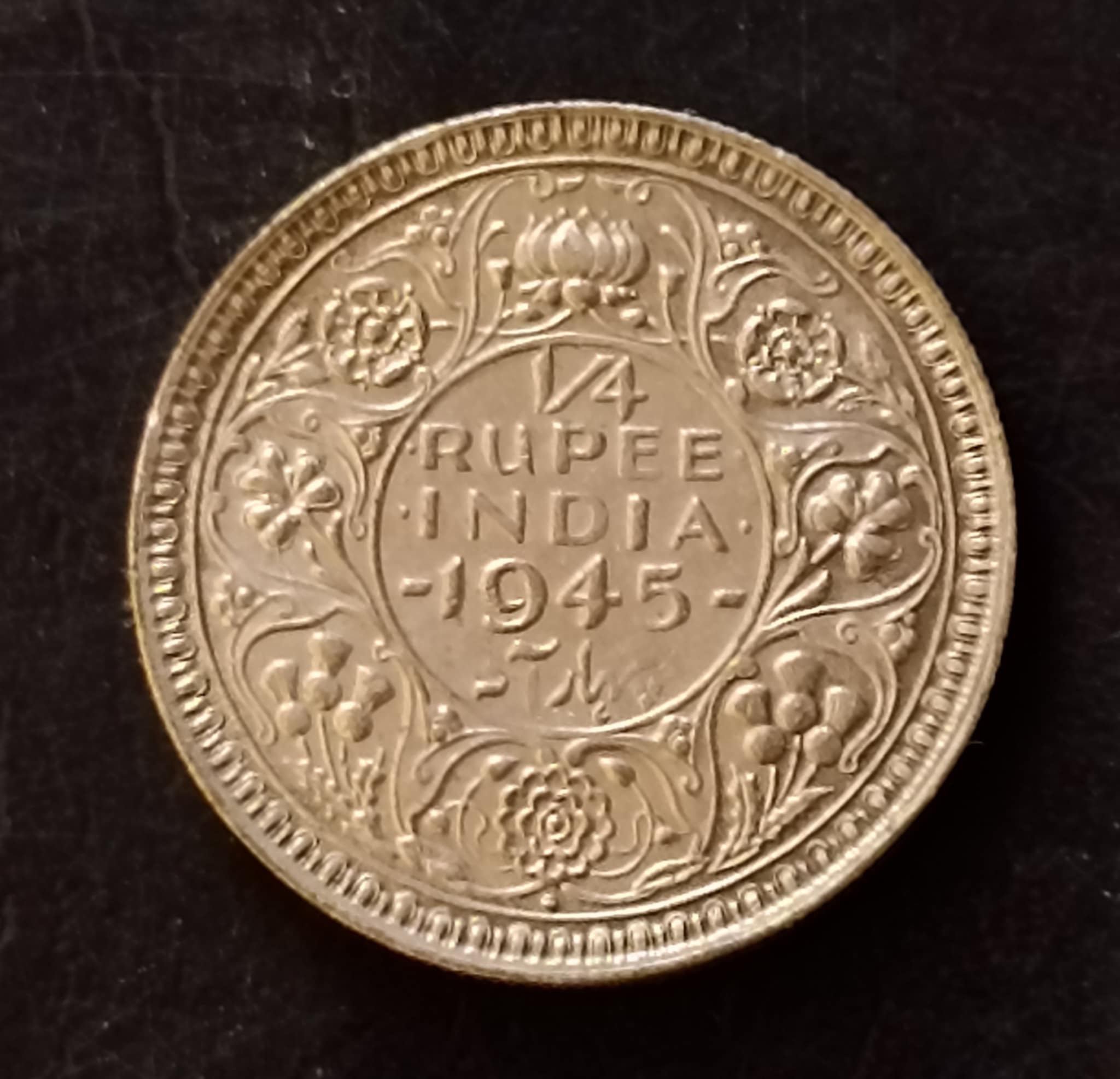 Silver British India King and emperor George vi Year 1945 Denominaton 1/4₹ Same and similar piece available