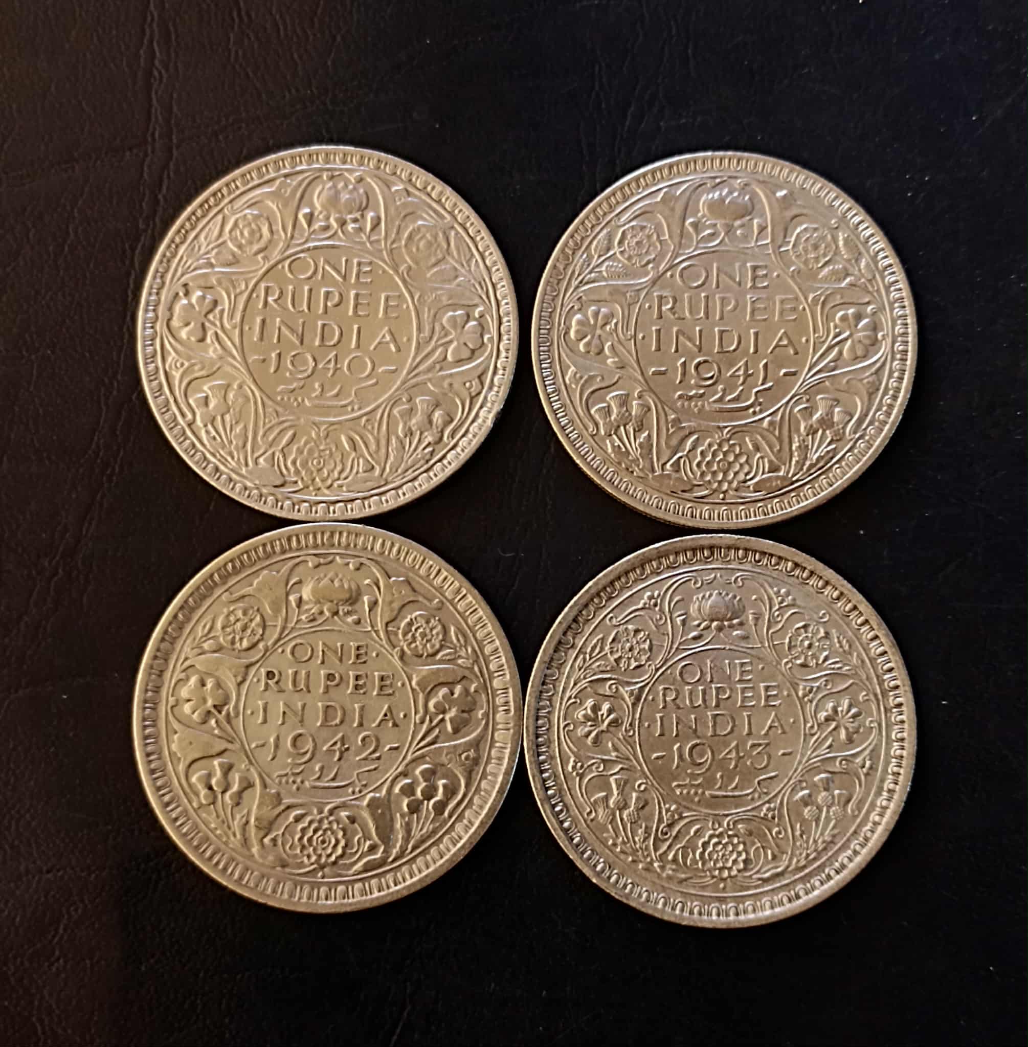 Silver British India Set of 4 pieces of 4 different year King and emperor George vi Denominaton 1 ₹ Excellent condition Same and similar piece available