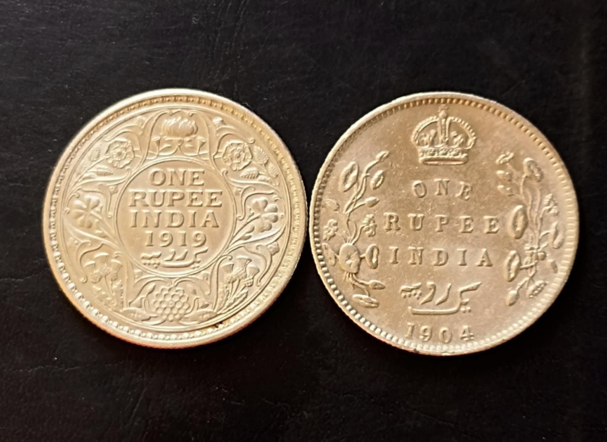 Silver British India Set of two pieces of 2 different portrait King and emperor George v King and emperor Edward VII Denominaton 1₹ Full silver Excellent condition Same and similar piece available