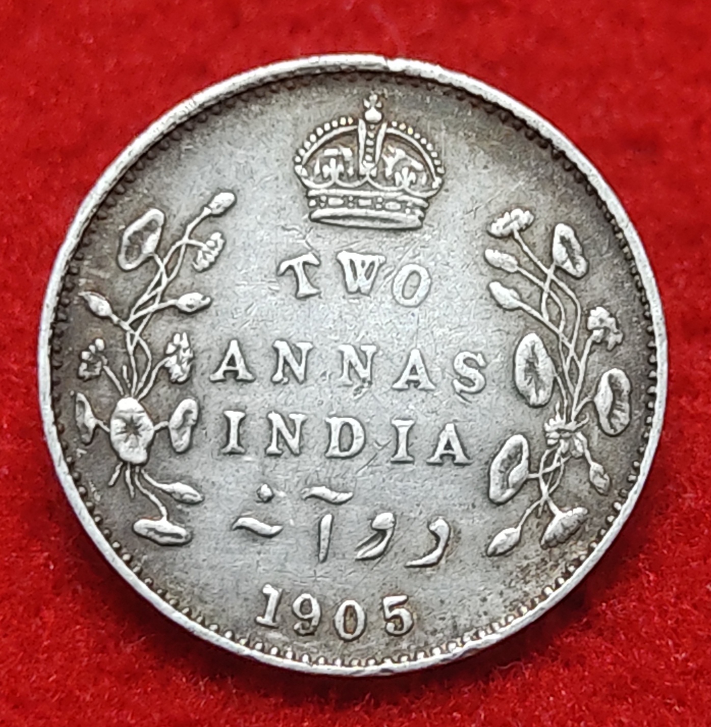 TWO ANNA SILVER COIN EDWARD VII 1905 CALCUTTA MINT