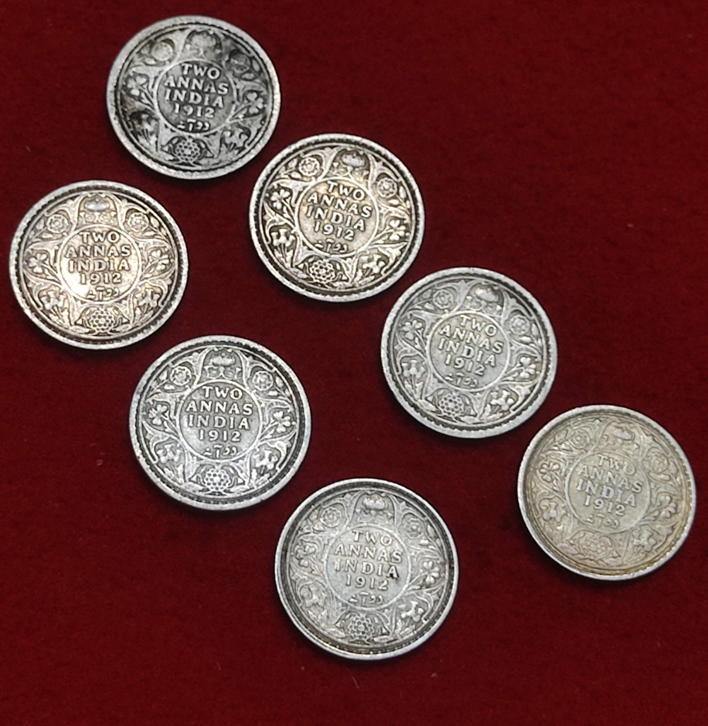 TWO ANNA 1912 GEORGE V 7 COIN SET