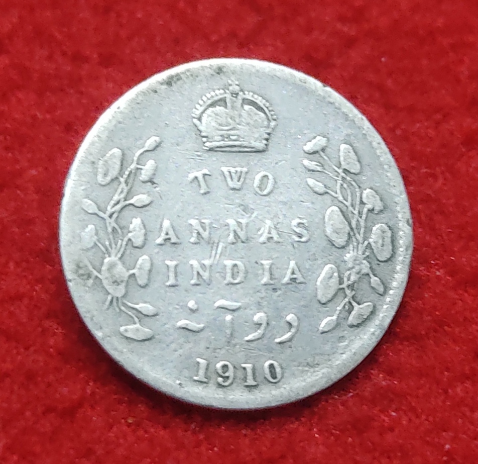 🌟 Rare 1910 TWO ANNA SILVER coin