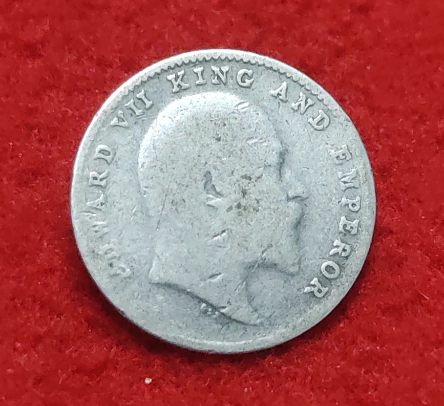 TWO ANNA SILVER EDWARD VII 1910 BOMBAY MINT