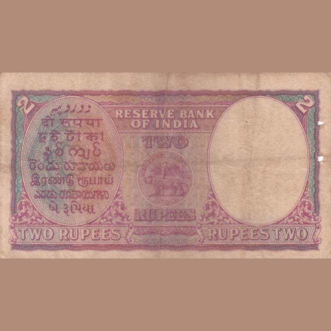 British India 2 Rupees George VI Cd Deshmukh Semi Fancy 007 Ending number rare Note