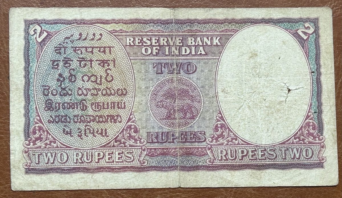 British India 2 Ruppes George Six Governor C. D. Deshmukh Very Rare Note