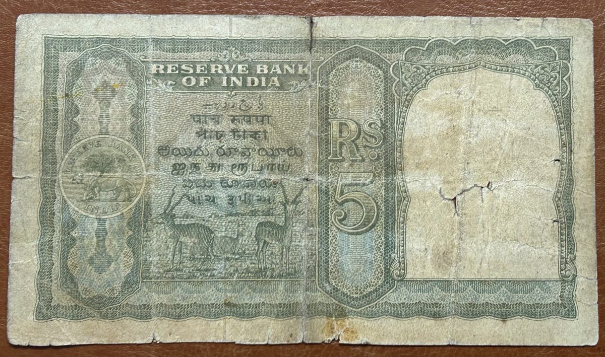 British India 5 Ruppes George Six Governor C. D. Deshmukh Very Rare Note