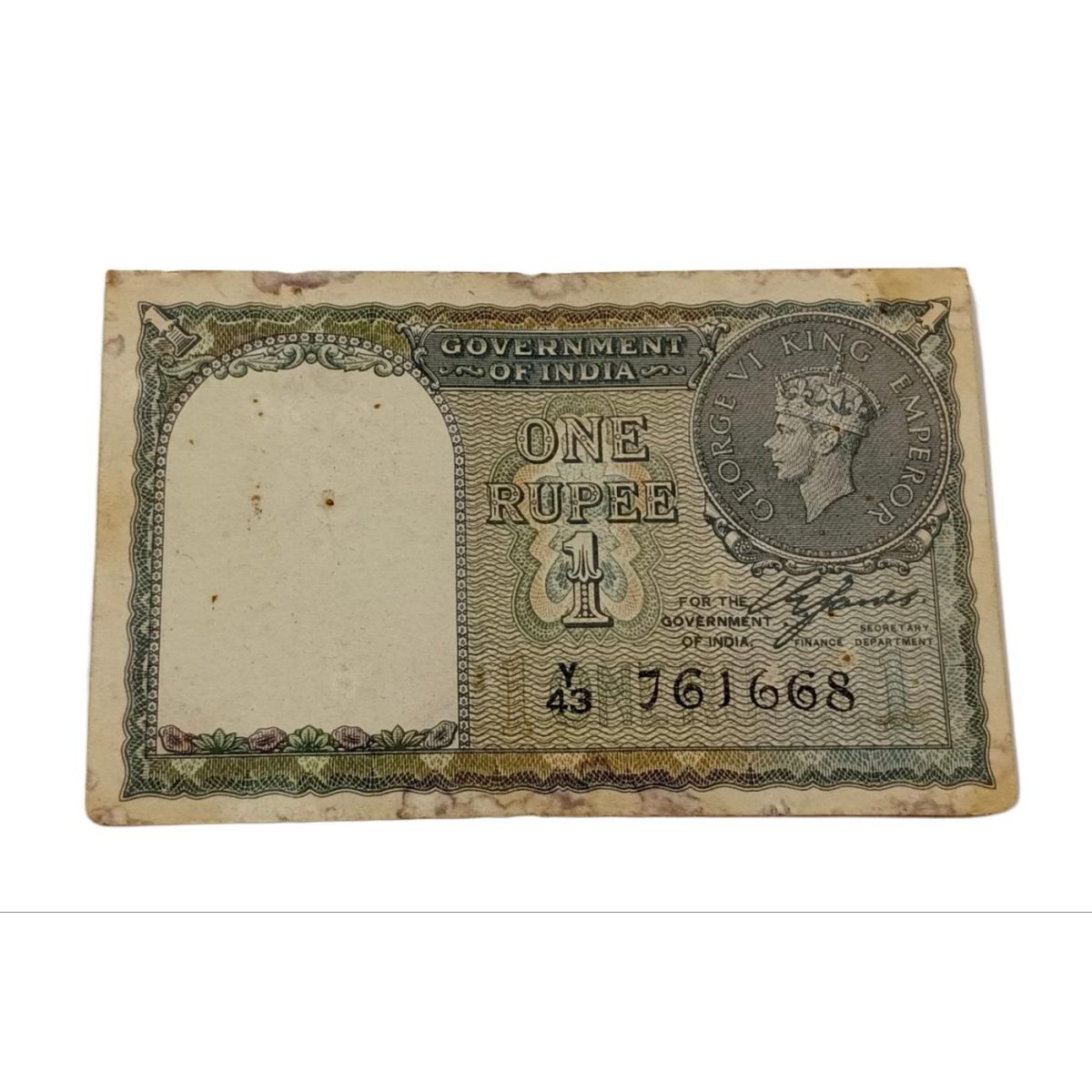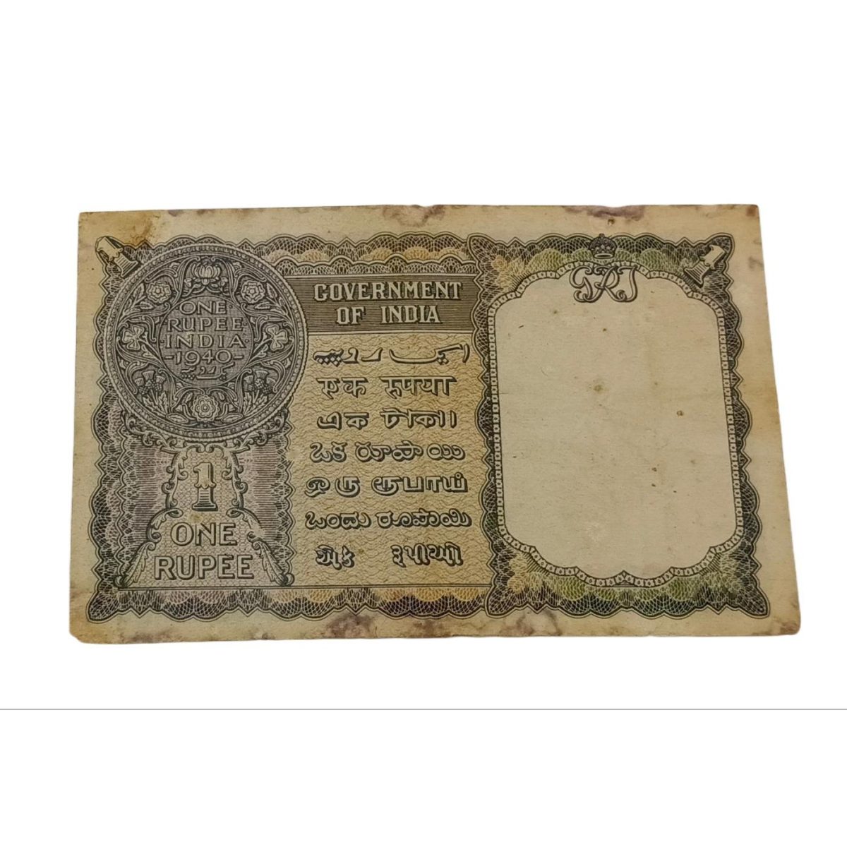 British India ONE RUPEE Year 1940 Sign C. JONES King GEORGE-VI Black Serial in Collectable Grade.