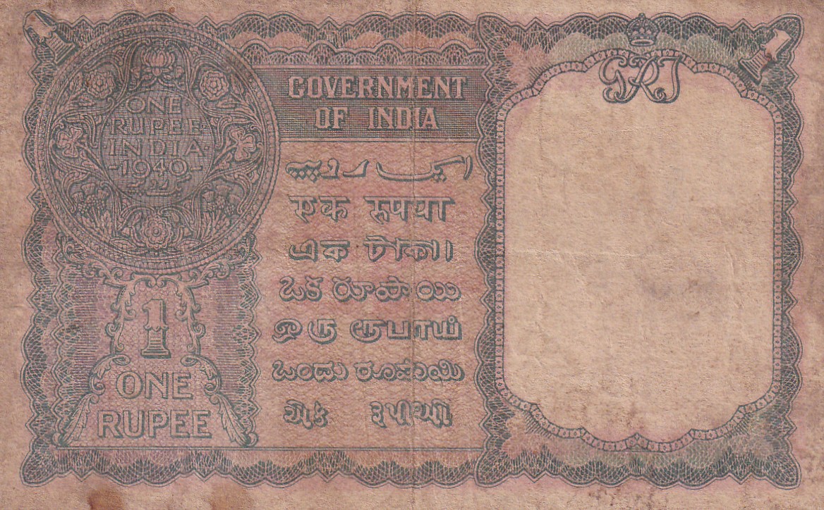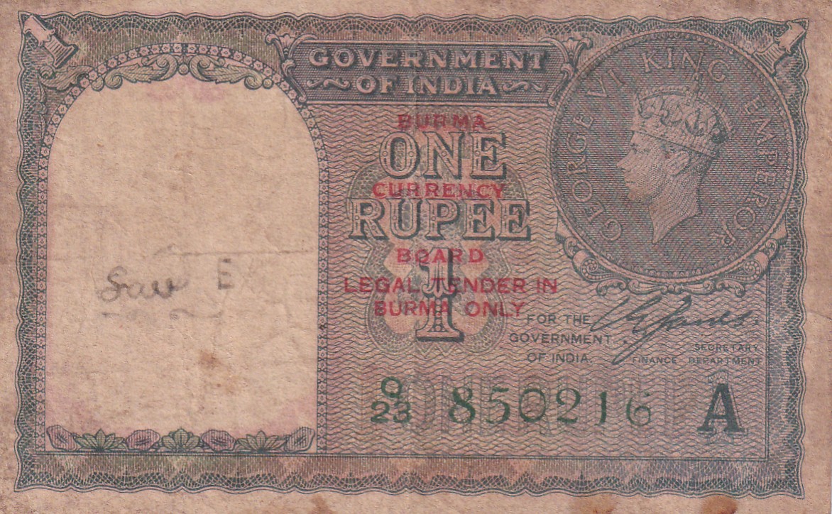 British India One Rupees 1940 (Burma) Extremely Rare Note