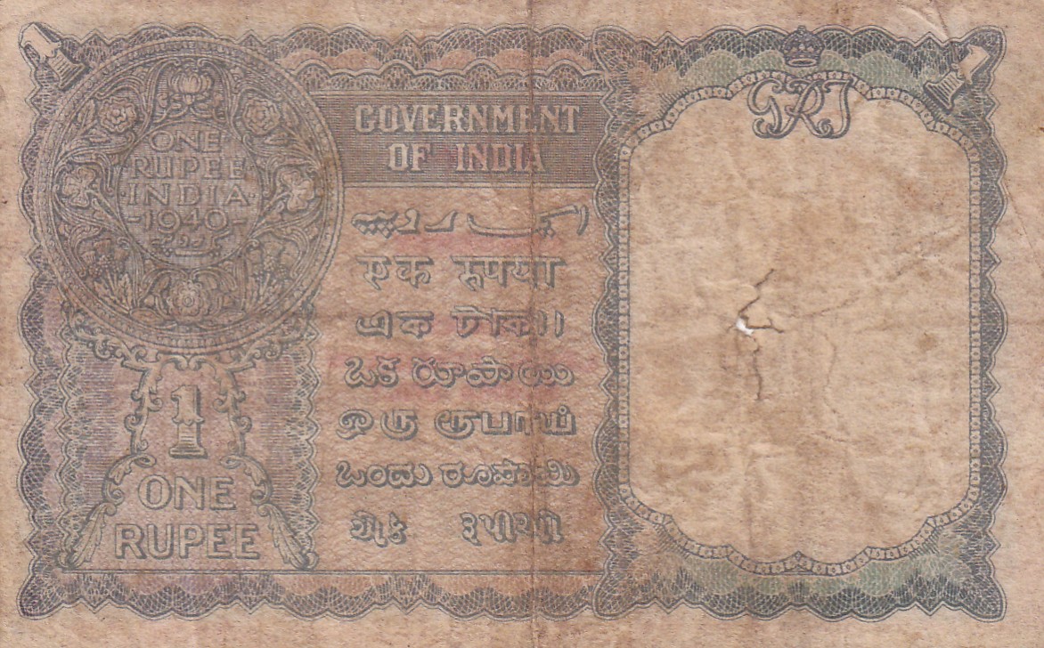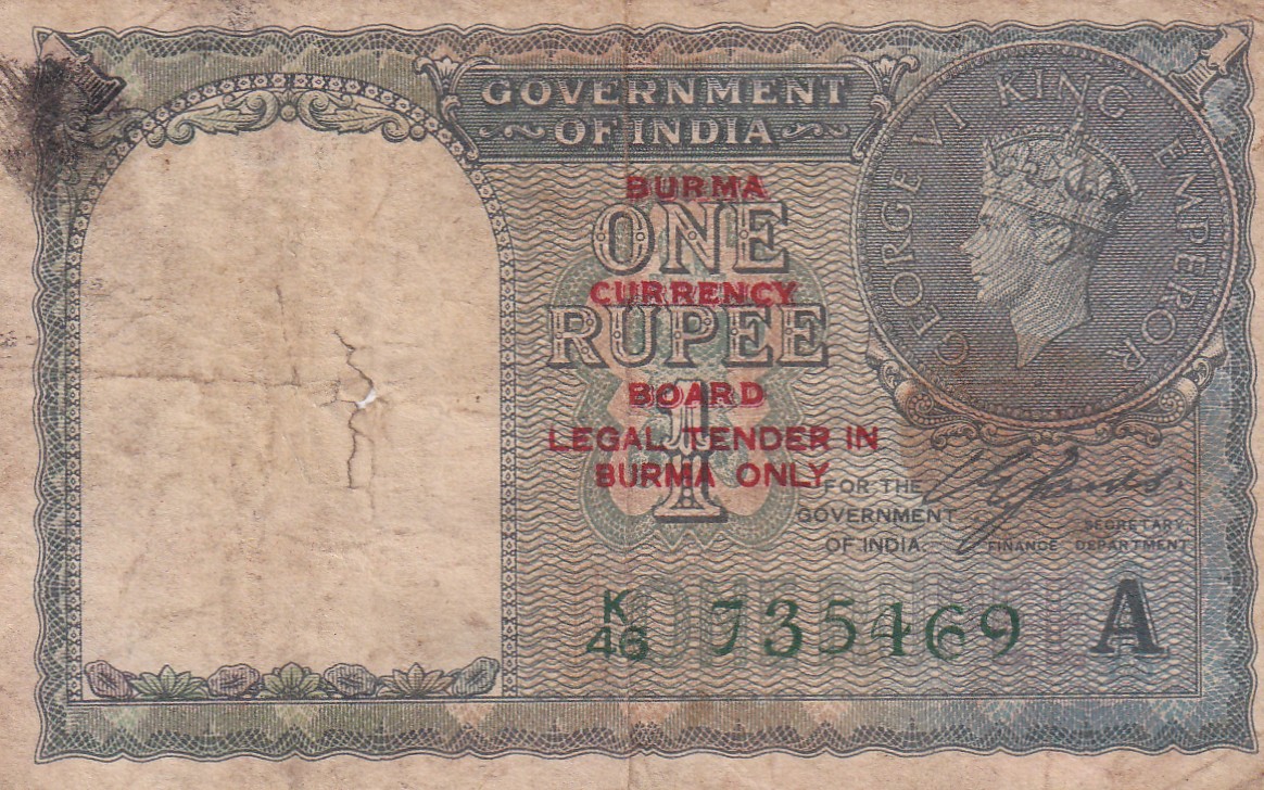 British India One Rupees 1940 (Burma) Extremely Rare Note