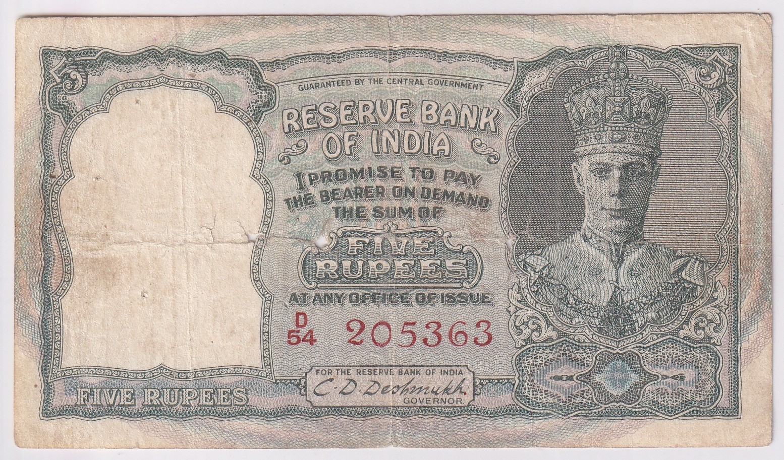 EX Rare Red Serial Number 5 rupees King George VI Note