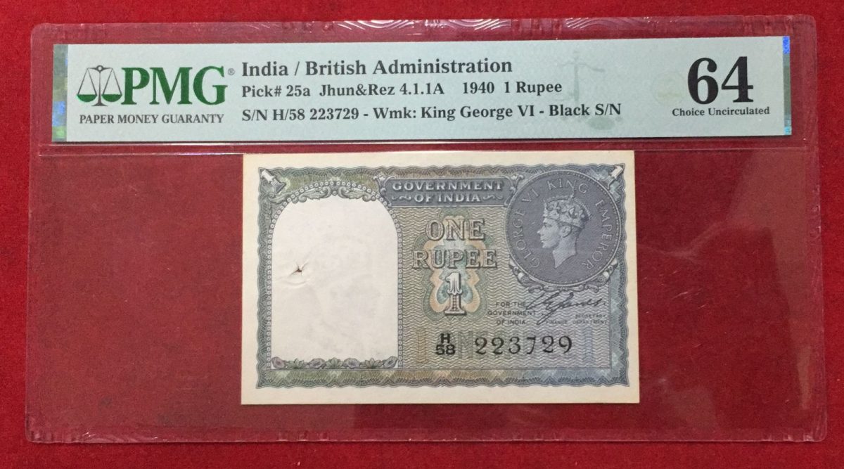 ONE RUPEES 1940 PMG GRADE 64 GEORGE VI BRITISH INDIA NOTE