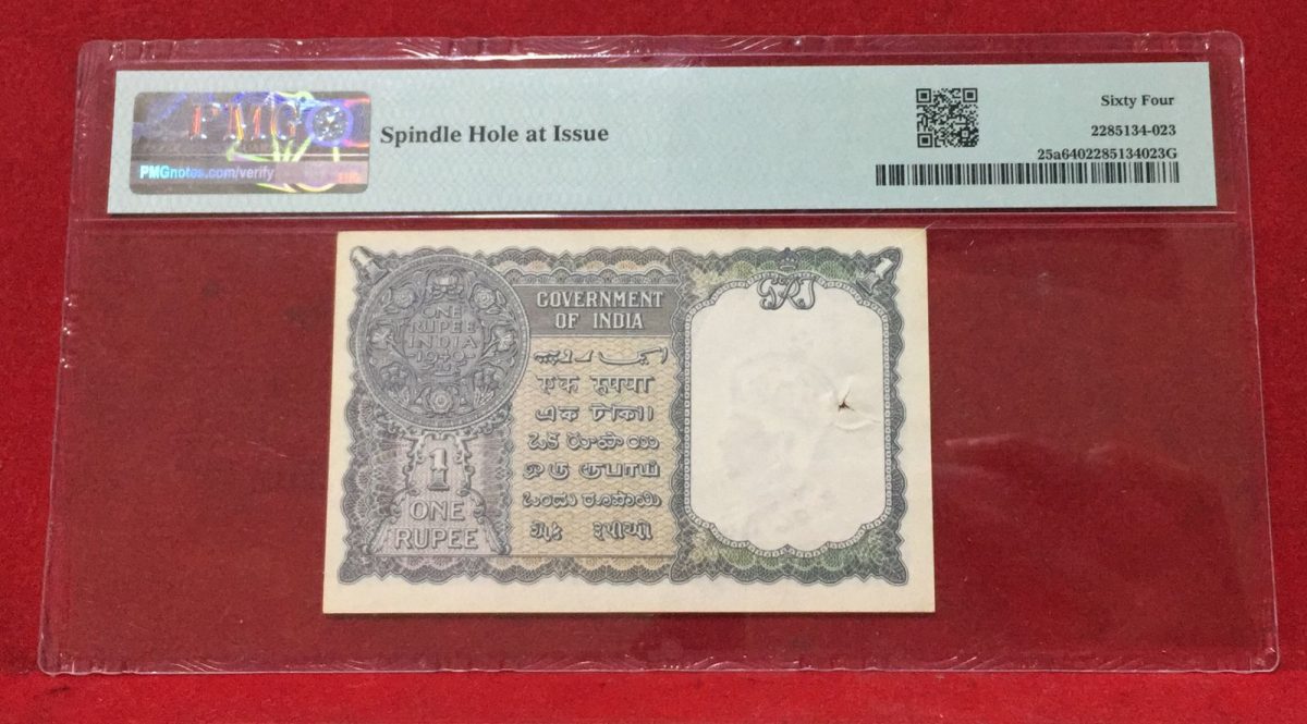 This ONE RUPEES 1940 PMG GRADE 64 GEORGE VI BRITISH INDIA NOTE is a rare and valuable collectible piece of British India’s numismatic history. Issued during the reign of King George VI, this 1 Rupee banknote holds significant historical and monetary value. Graded 64 by PMG, this note is in excellent condition, showcasing intricate design details and crisp printing.