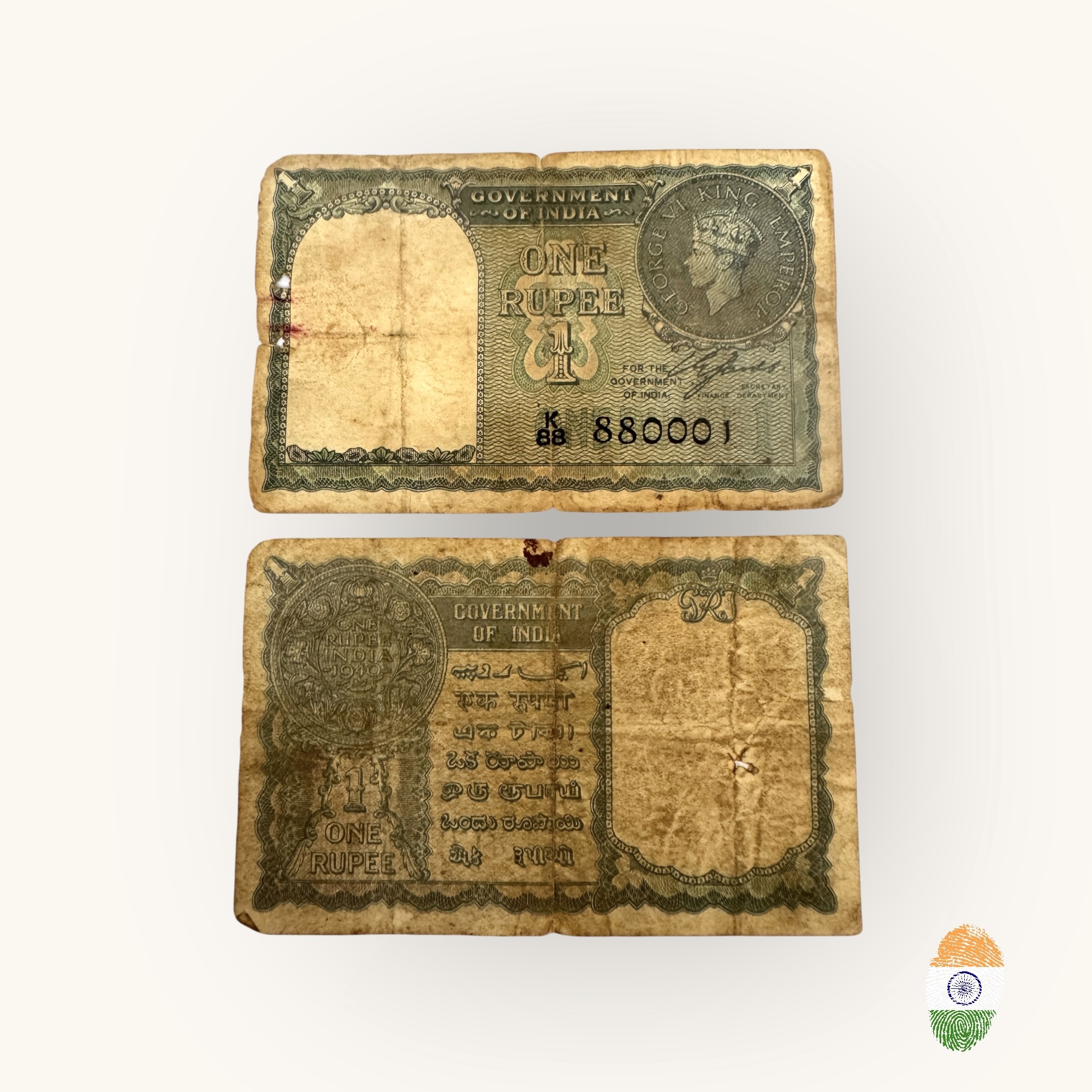 Re 1 British India Banknote 1940 Black Series King George VI Collectible Quality 880001 Burma overprint Unique and Rare Issue