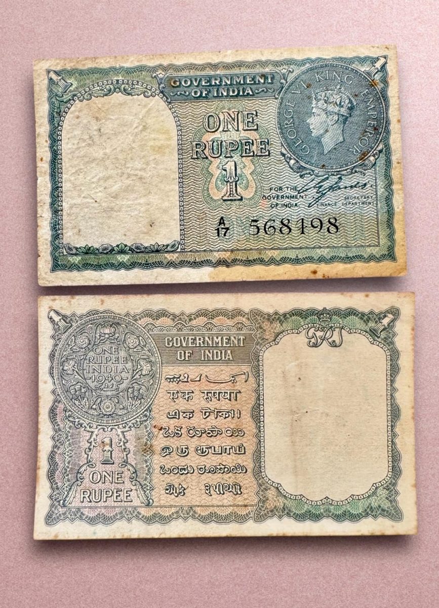 🔹 Rare Re 1 British India Banknote from 1940 Series