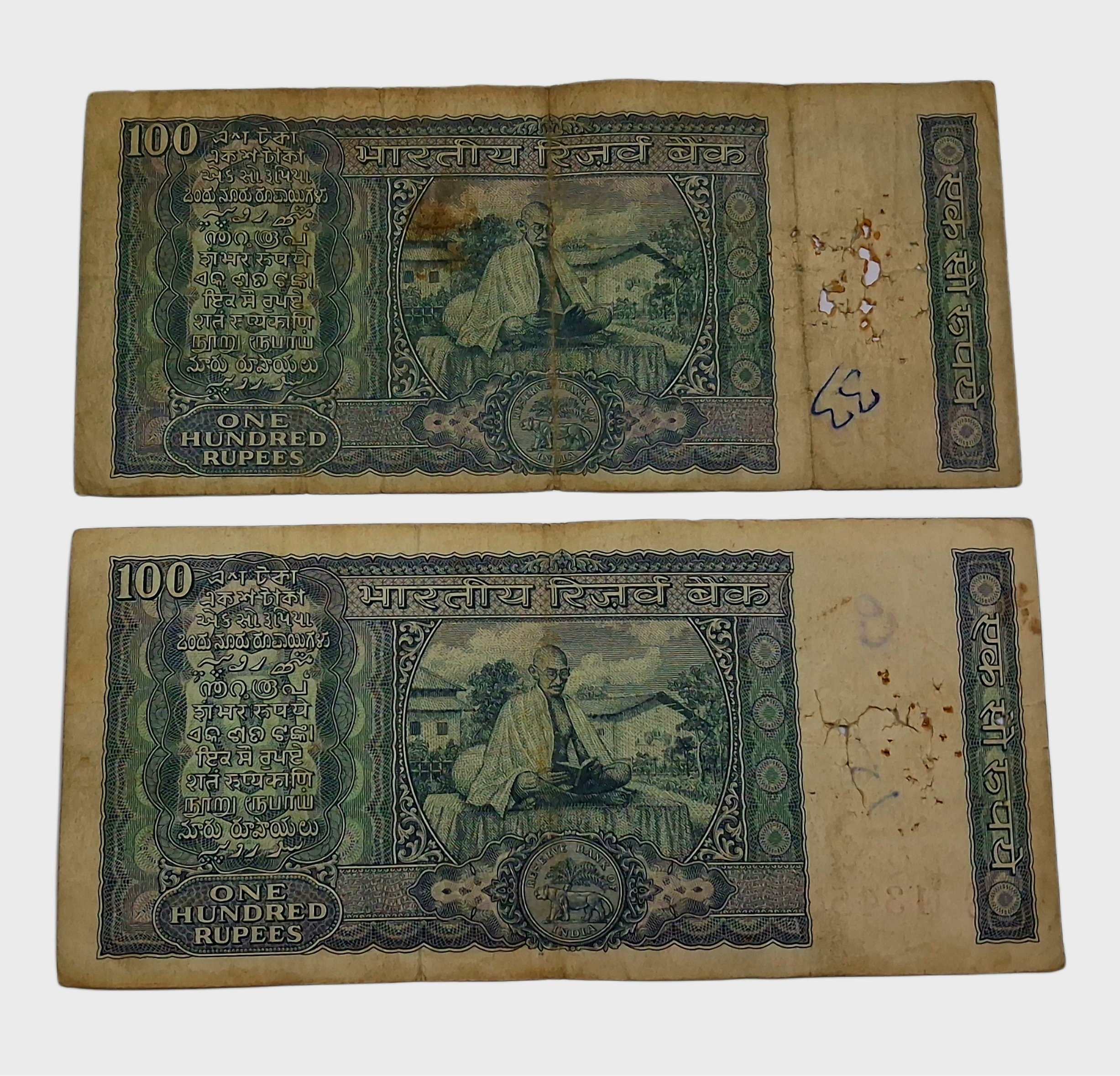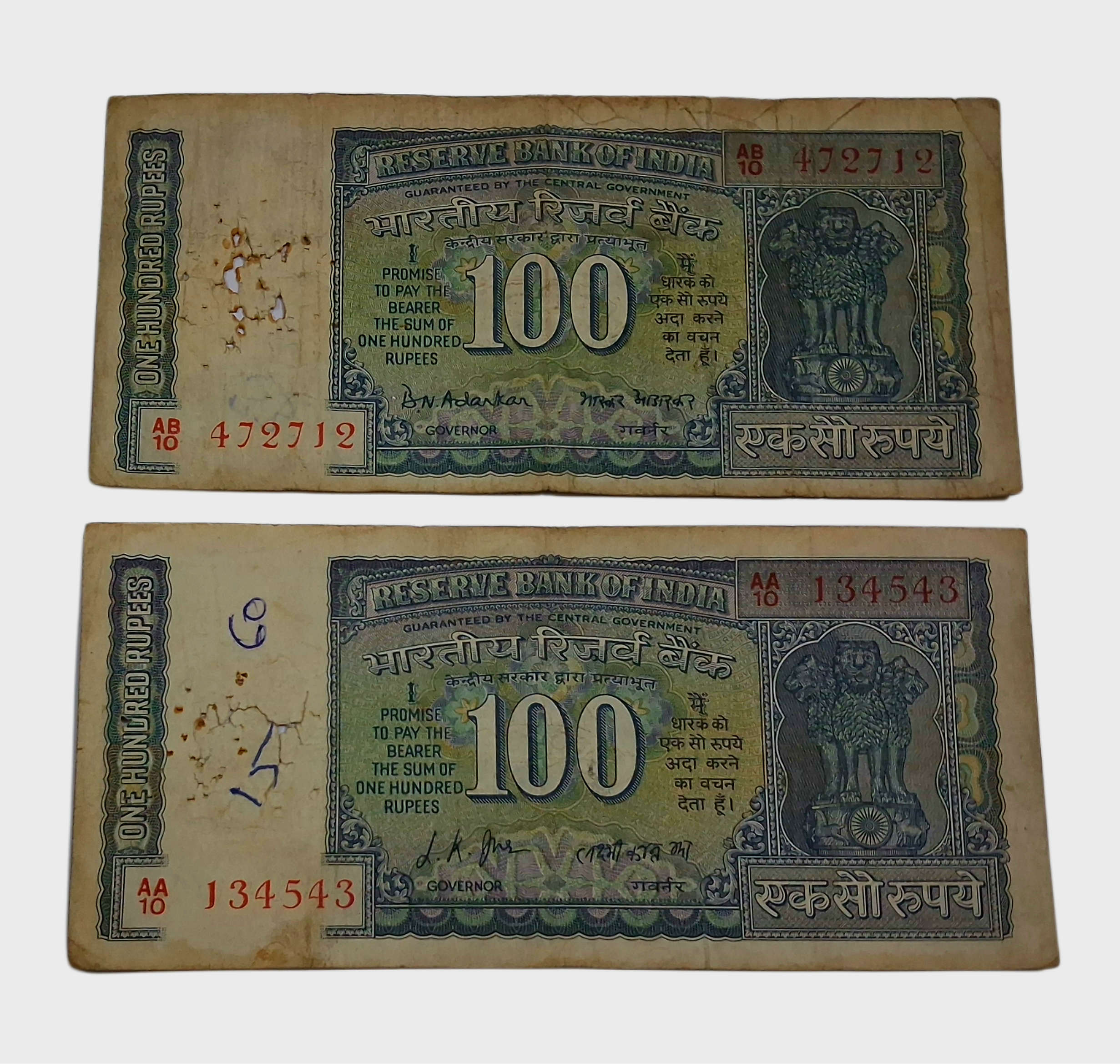 100 Rupees Old COMMEMORATIVE Issue White Strips B.R AMBEGAONKAR & L.K JHA Set of 2 Notes **V. RARE** Collectable Grades.