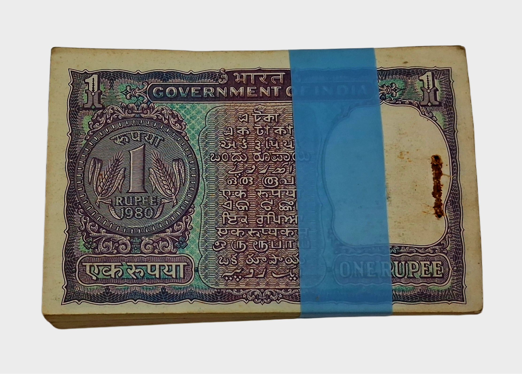 One Rupee Old Issue BIG COIN Year 1980 Sign MANMOHAN SINGH Serially 97 Notes SHORT Incomplete Bundle **SCARE** High UNC Grade.