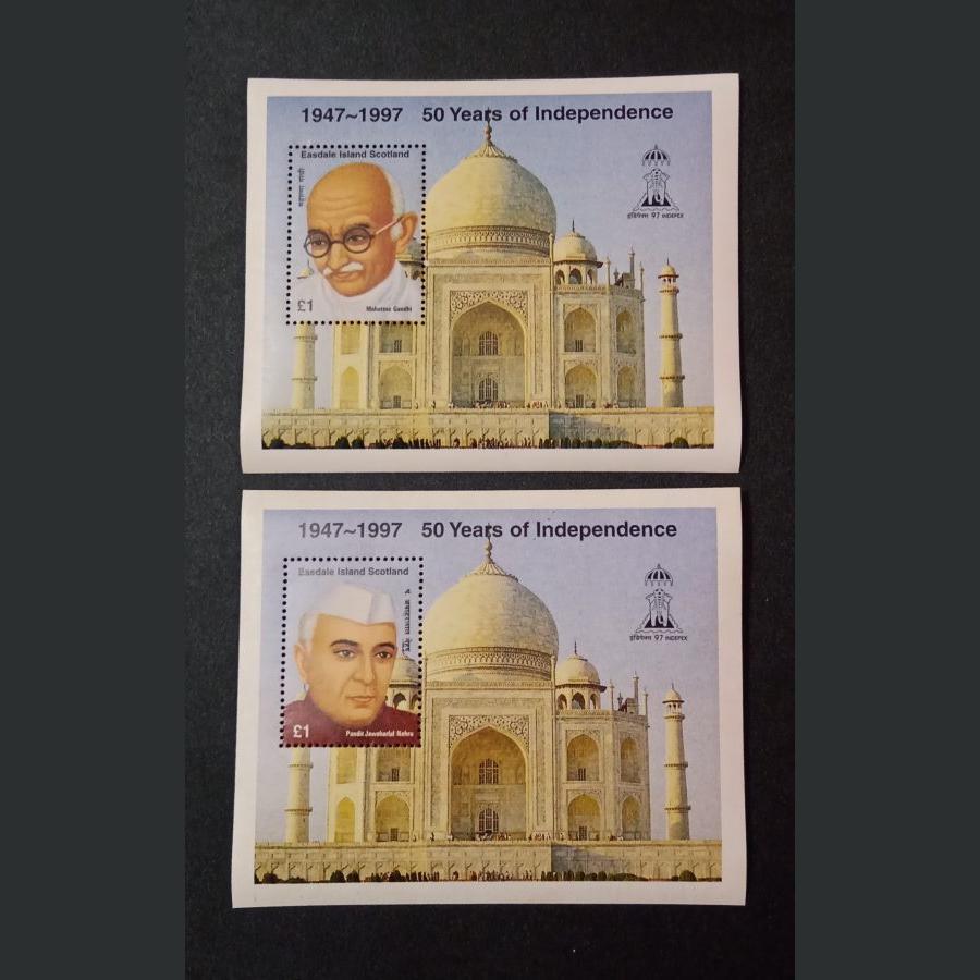 SCOTLAND Year 1997 MINIATURE On 50 Year’s Of Independence TAJ MAHAL and GANDHI and NEHRU Set 2 Quantity RARE Unused Conditions.
