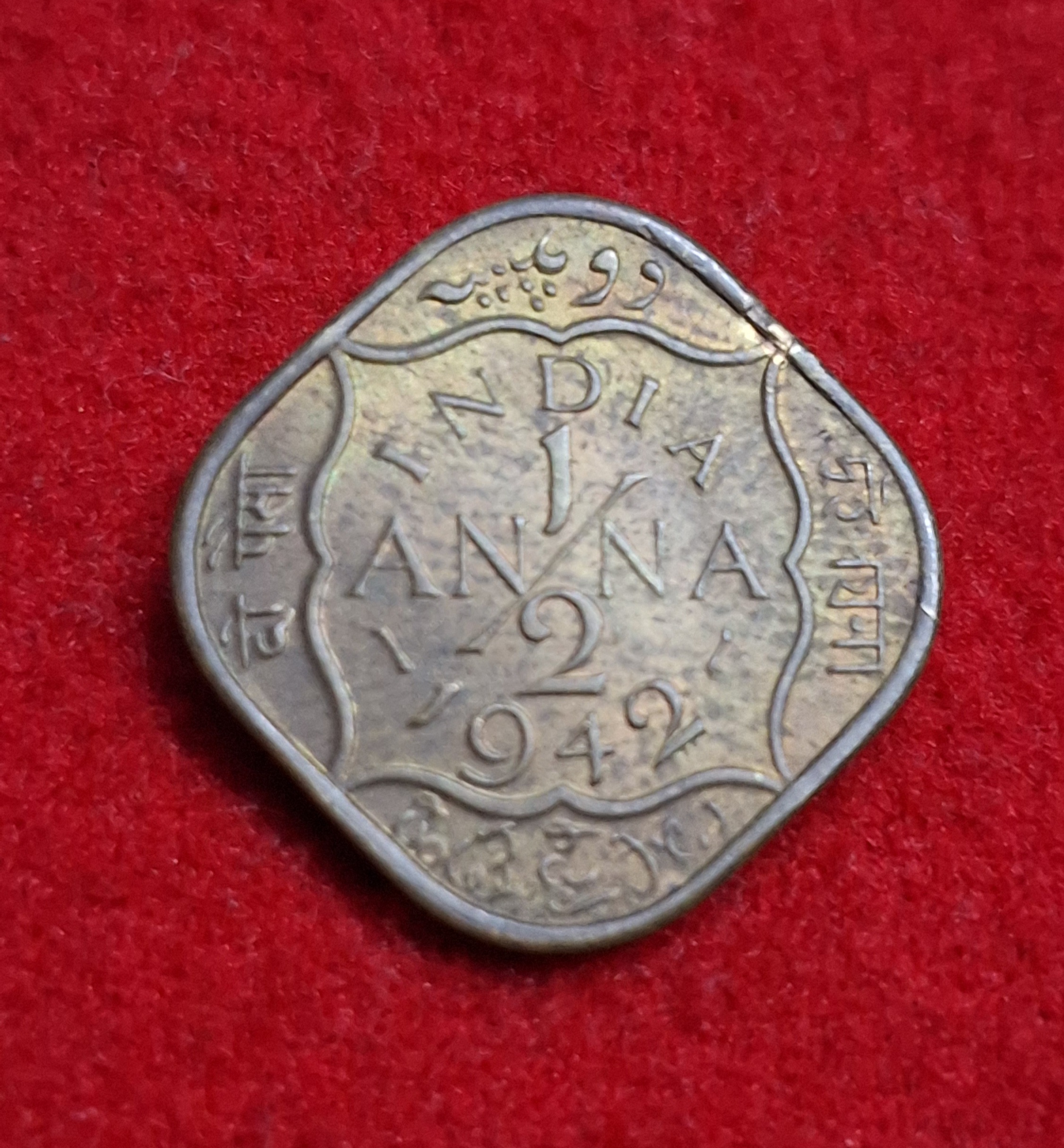 1/2 ANNA 1942 COIN GEORGE VI KING EMPEROR