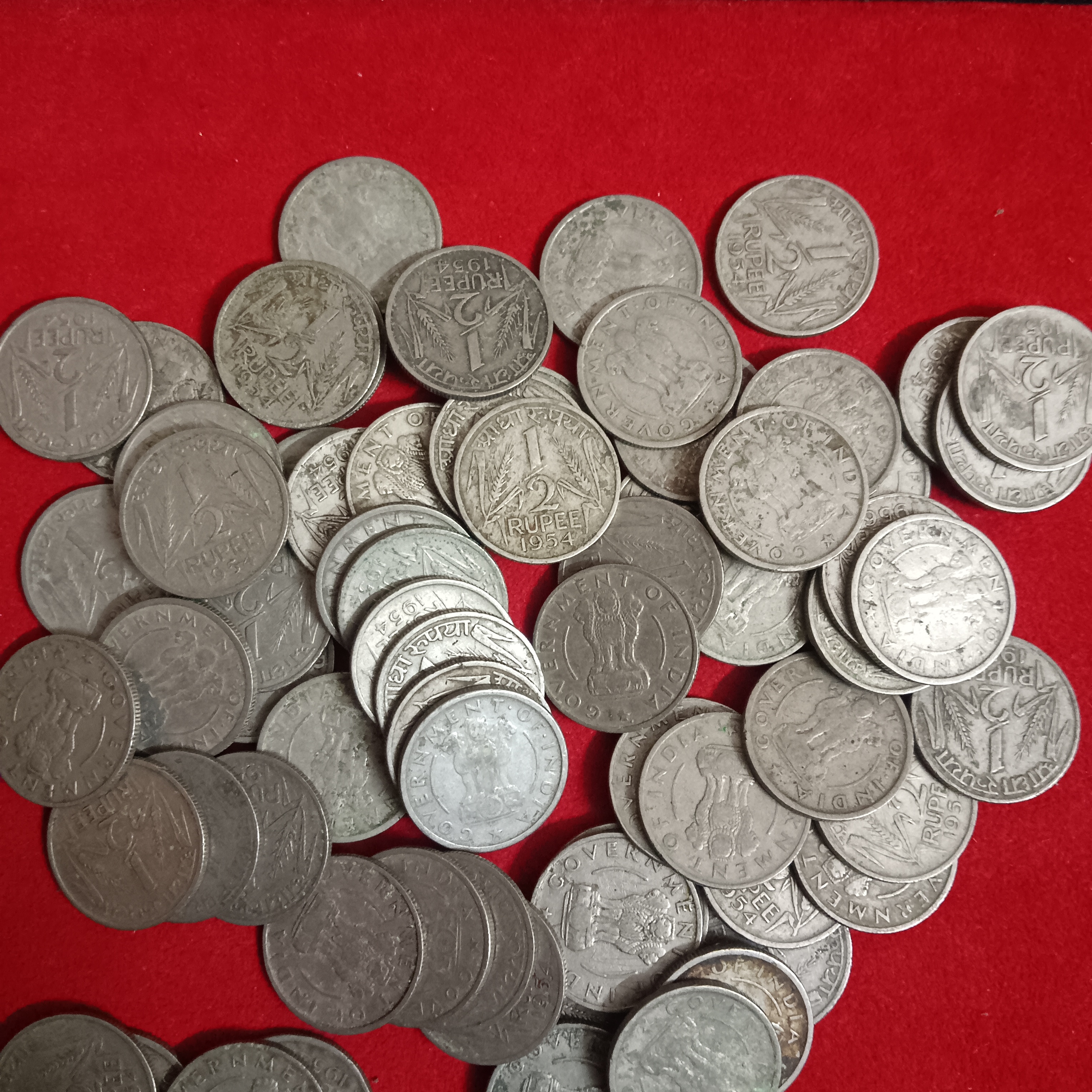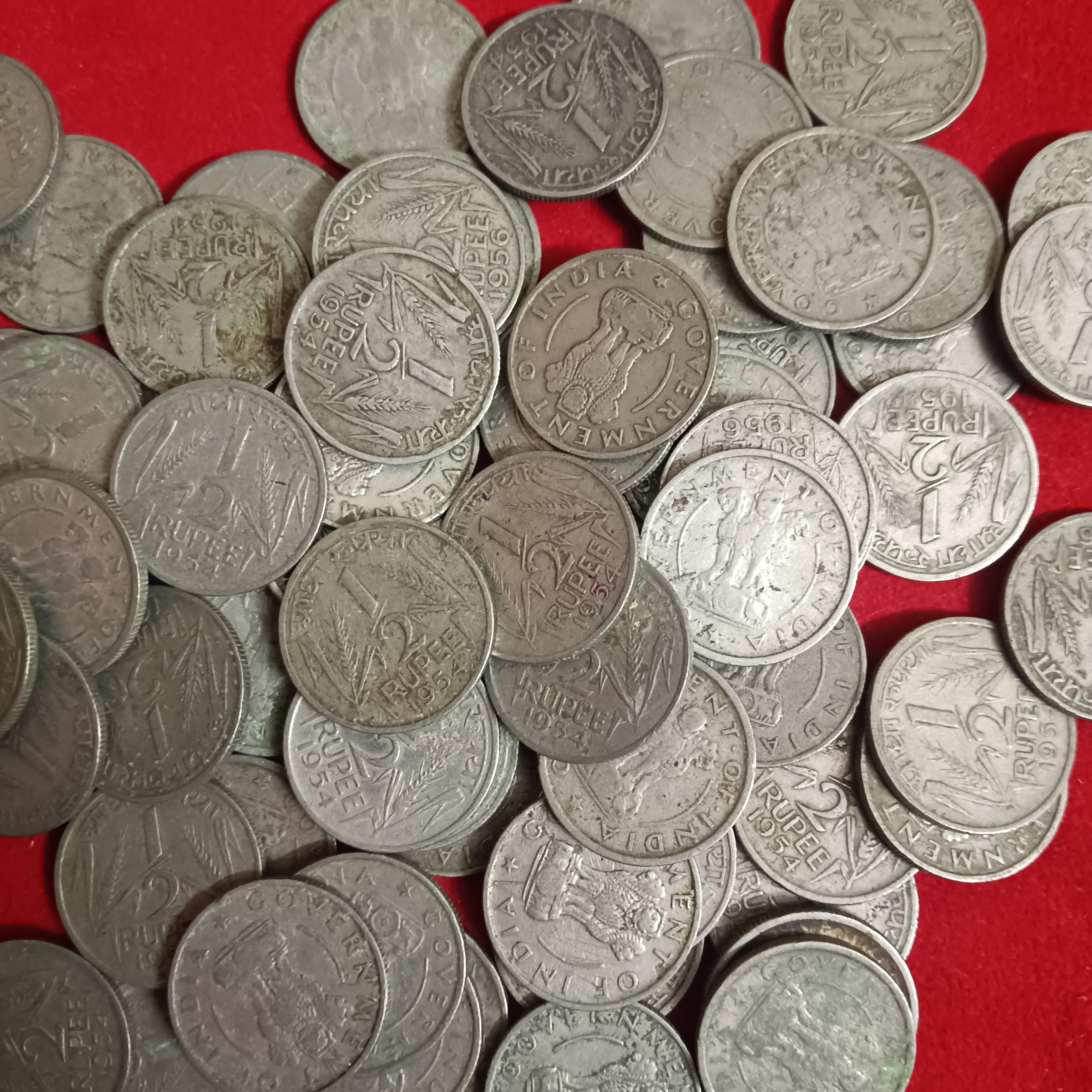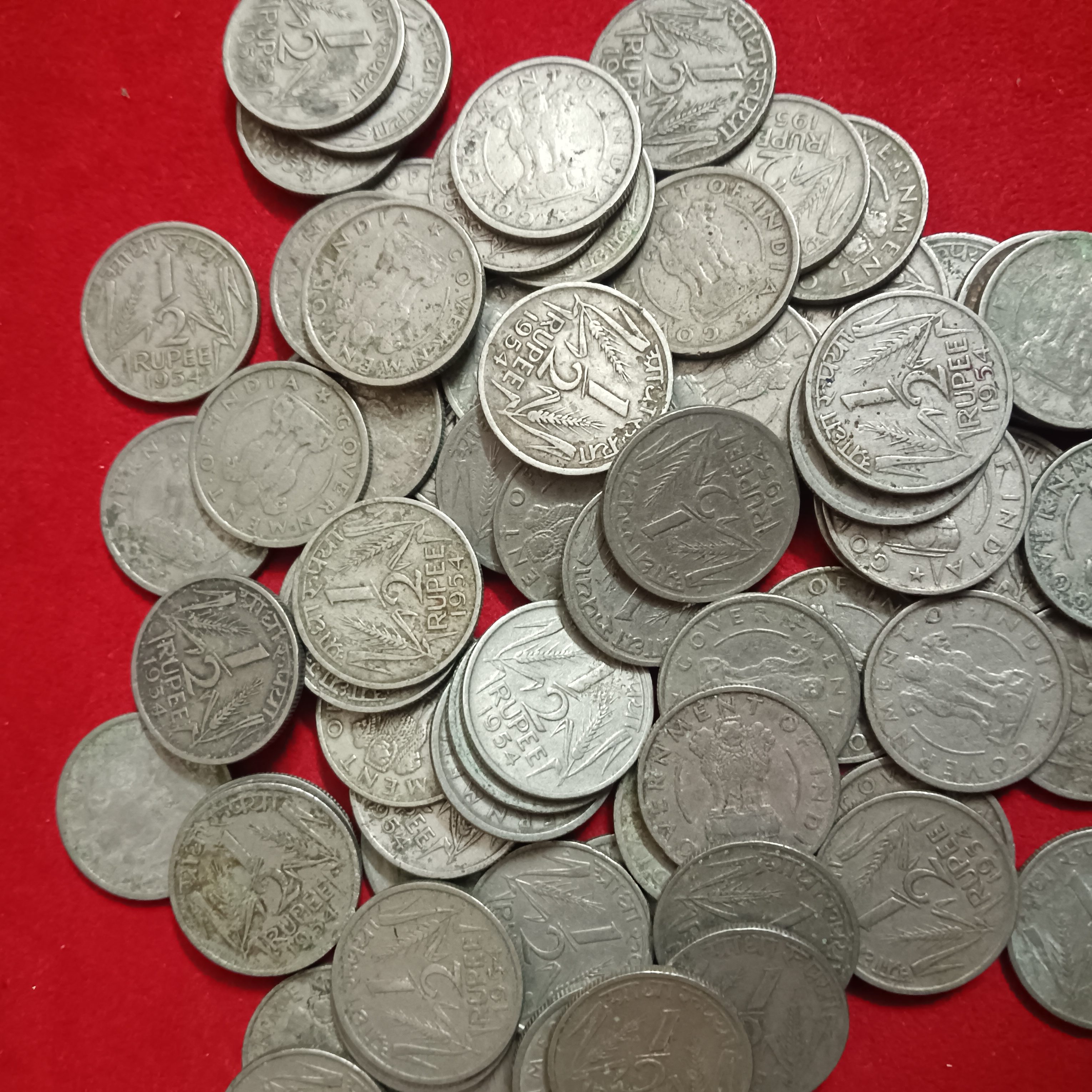 • Collection of 72 1/2 Half Rupee coins from mixed years and mints