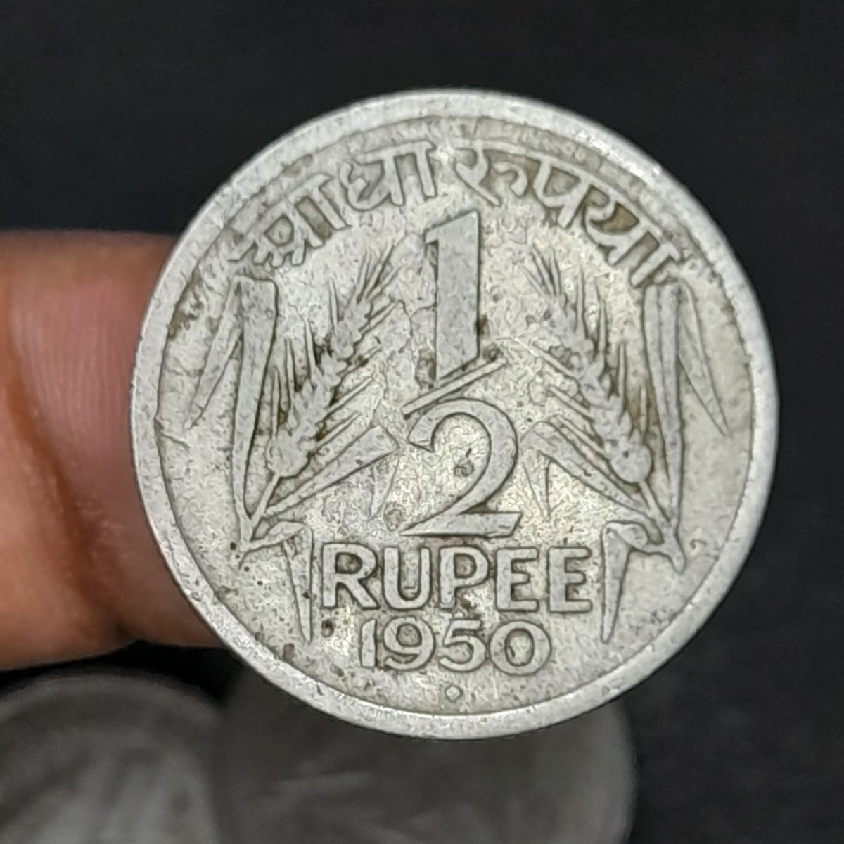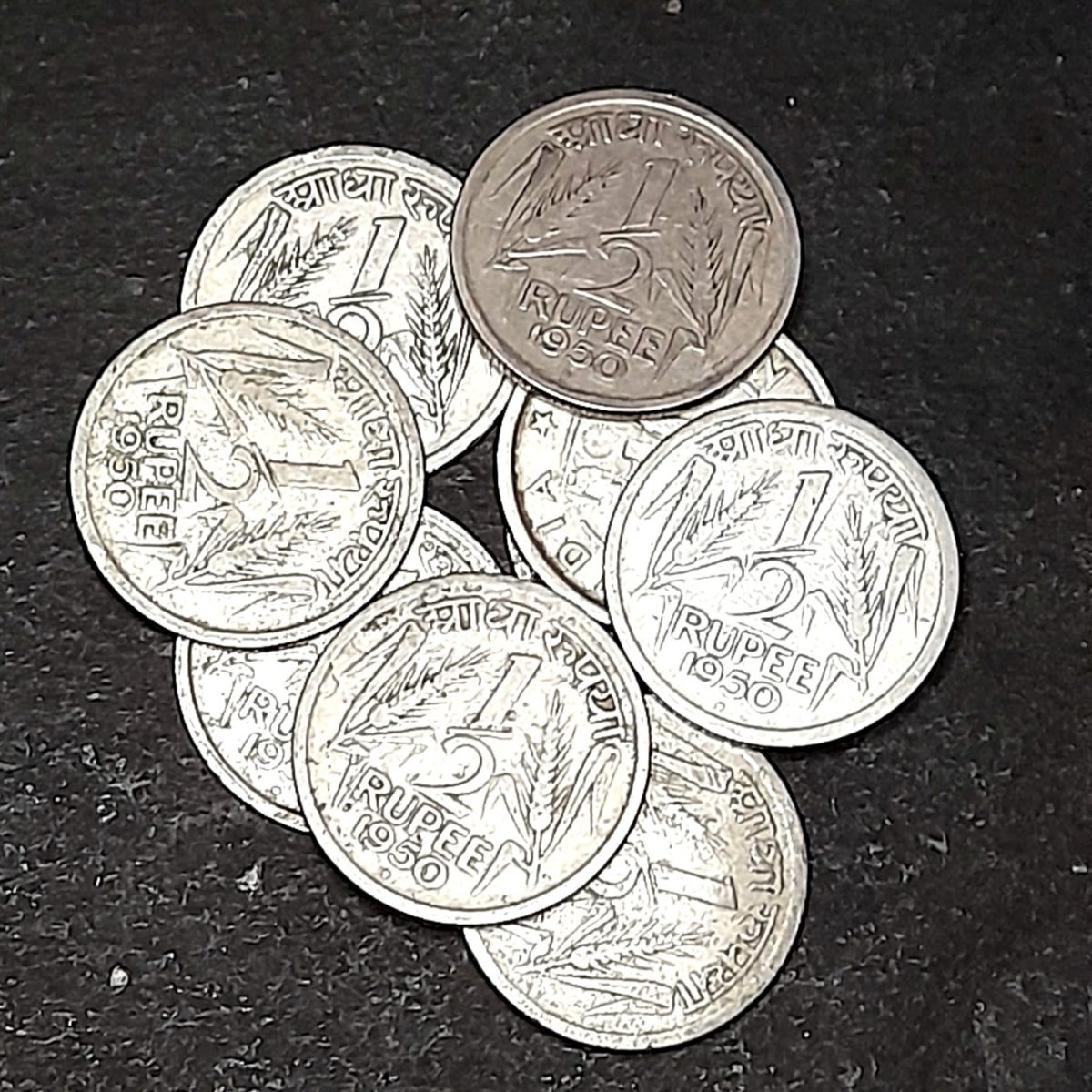 - 1/2 Half Ruppe 1950 Scare Coin 9 Pcs Given Fine or xf Condition 04