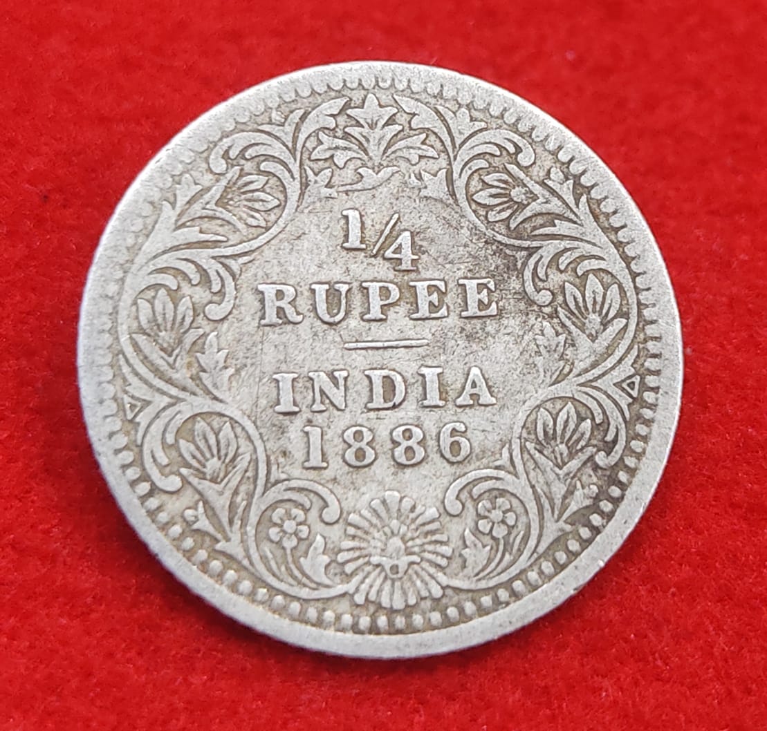 1/4 RUPEE 1886 CALCUTTA MINT VICTORIA EMPRESS QUEEN COIN