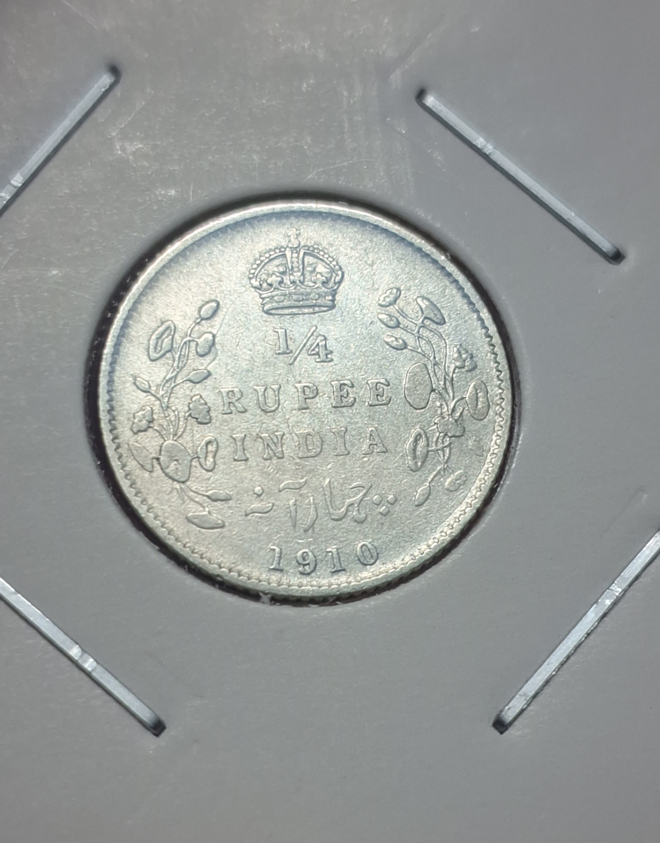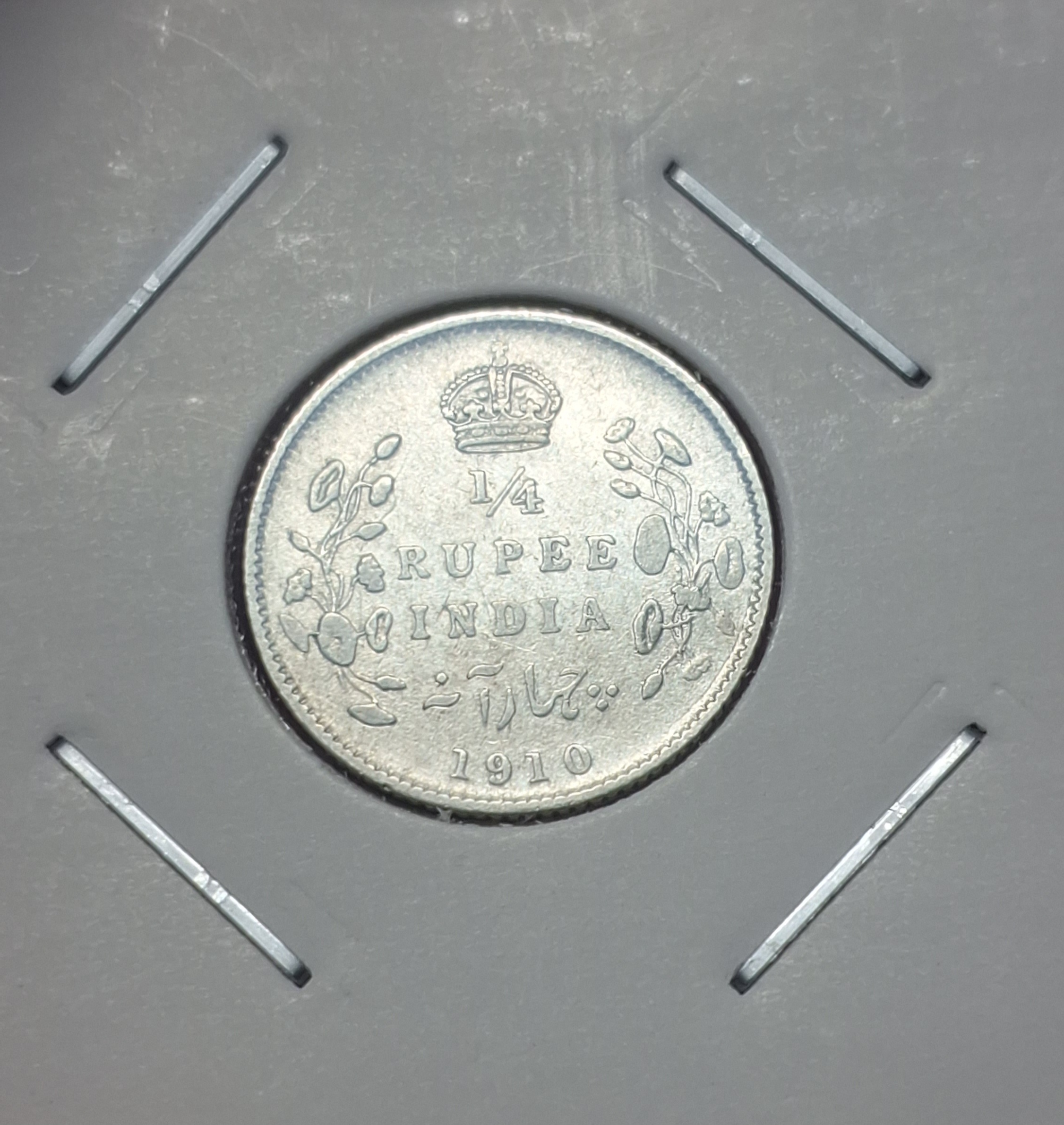 1/4 RUPEE 1910 CALCUTTA MINT EDWARD VII KING AND EMPEROR COIN