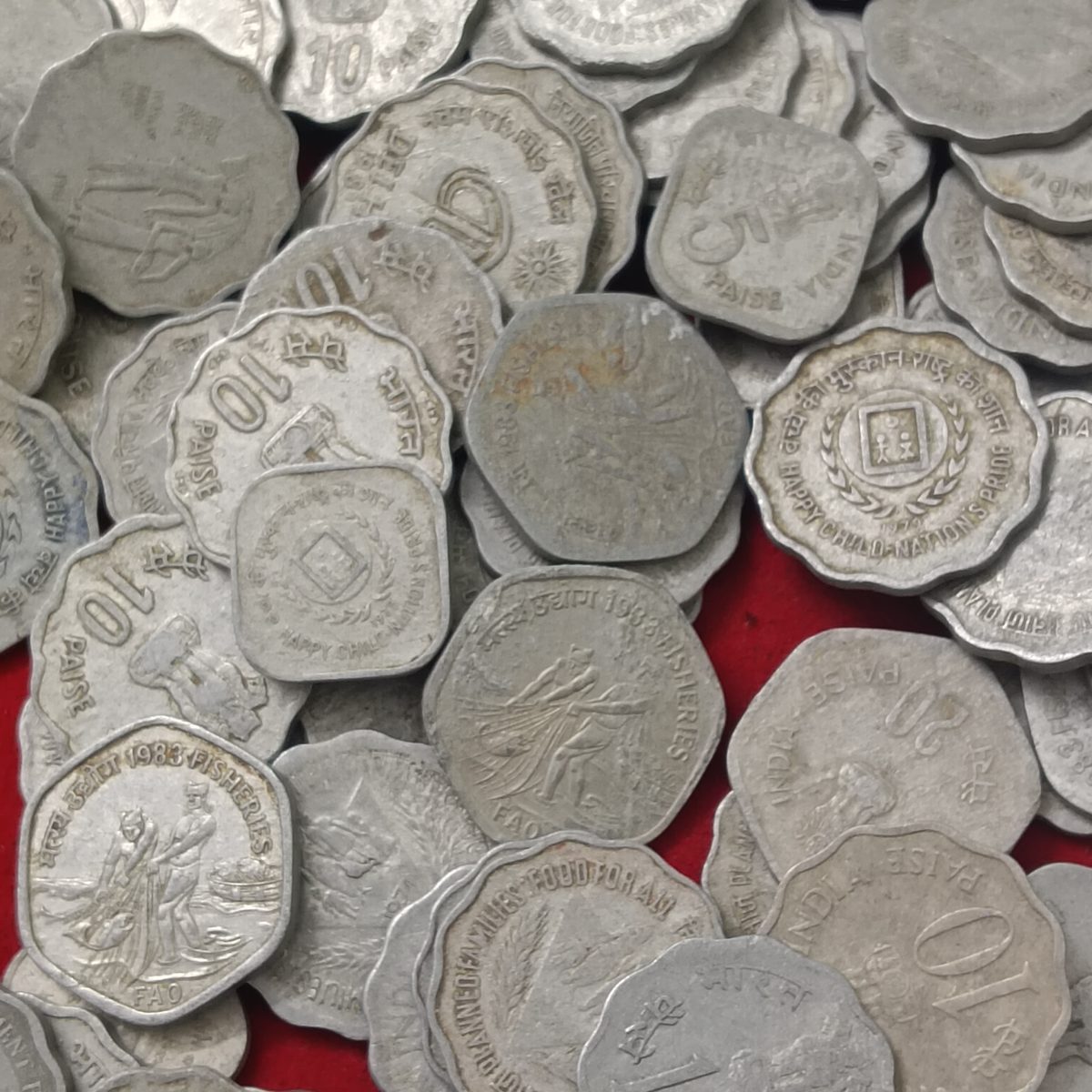 - 10 or 20 Paise Aluminium Commemorative Coins Scare Mix Variety 50 Pcs Given Same Loot Given