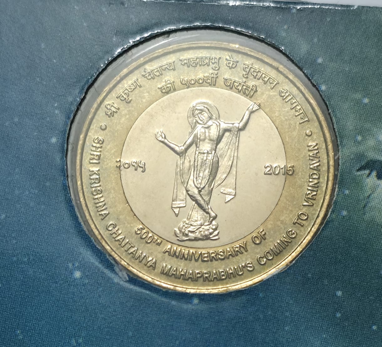 10 Rs Shri Krishna Chaitanya Mahaprabhu Coming To Vrindanvan Copper Nickel Coin UNC