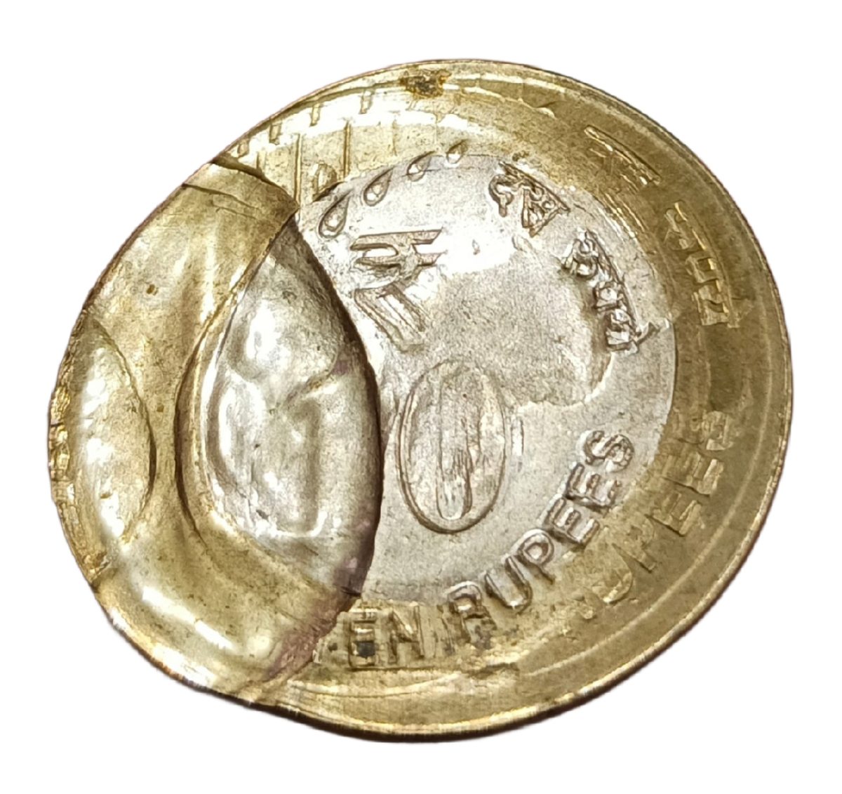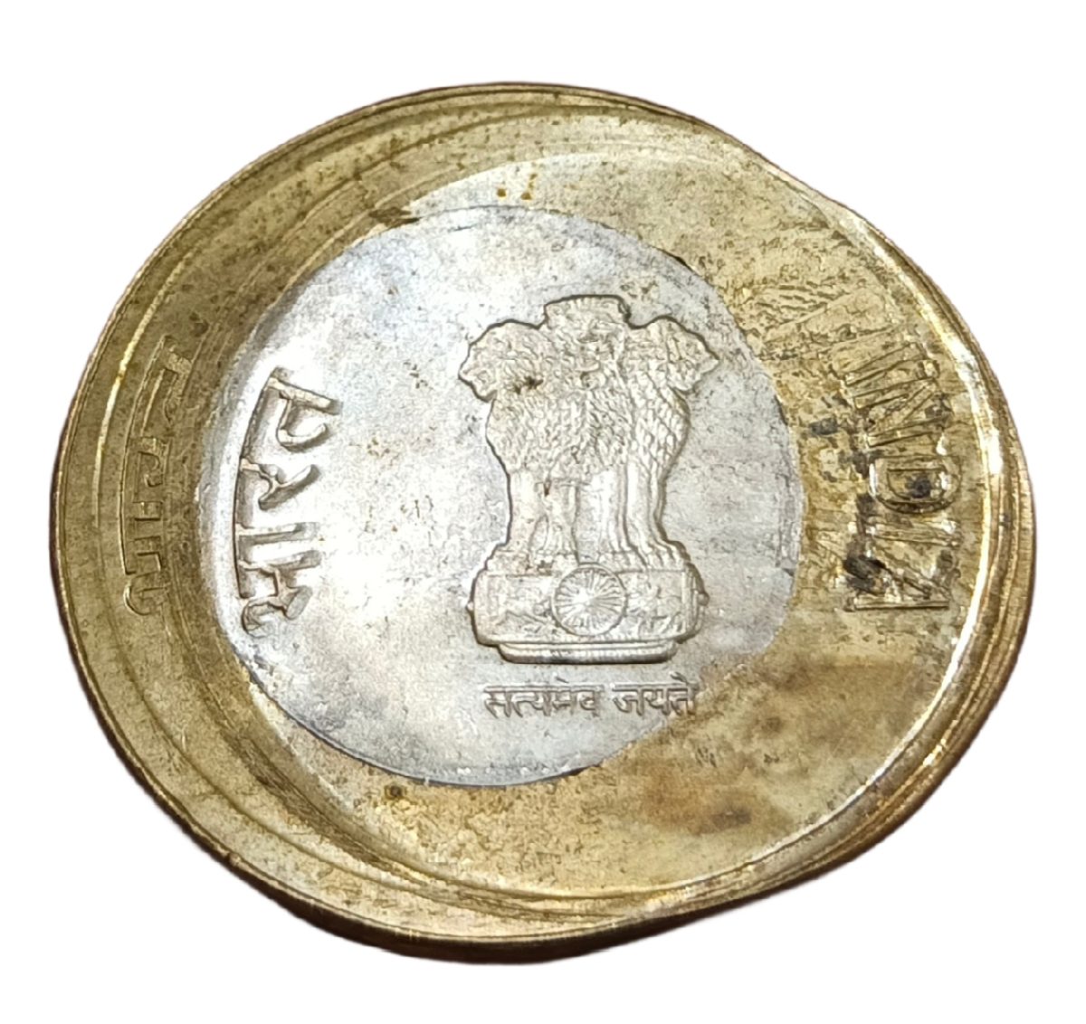 10 Rupees Bi-Metal New Issue BROAD STRUCK, STRUCK THROUGH & MULTIPLE STRIKES Errors in UNC Grade.