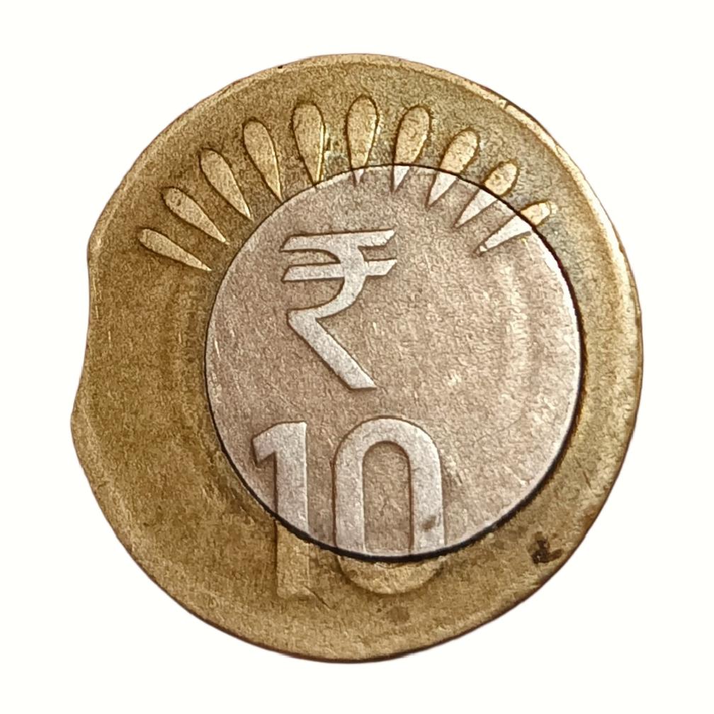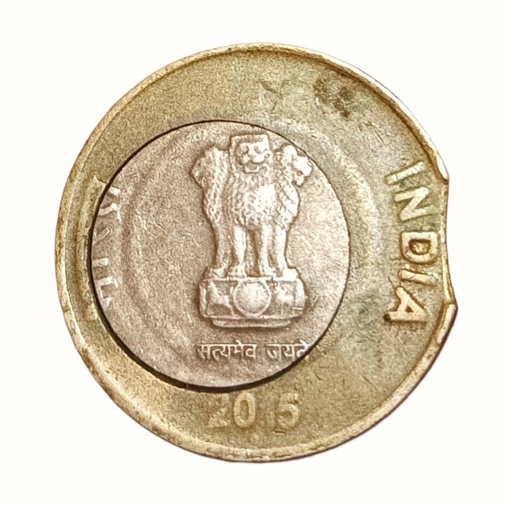 10 Rupees Bi-Metal Year 2015 Bombay Major INNER DISC OFF CENTRE & CLIP CUT Errors Collectable Grade.